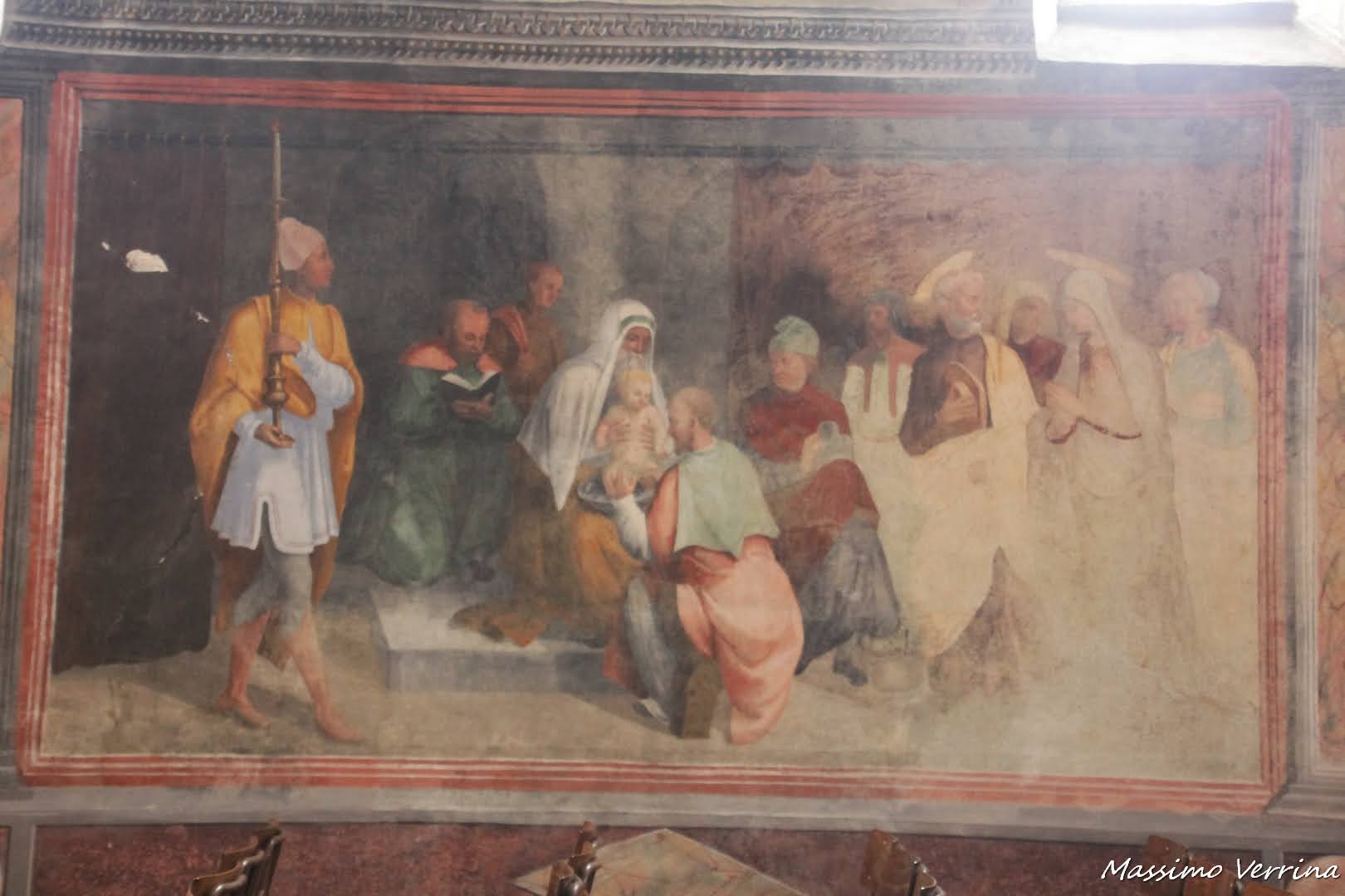 Torniamo ad ammirare gli affreschi delle pareti laterali della navata principale, anche qui troviamo dettagli pittorici di altissimi livello, anche se un po’ deteriorati dal tempo…