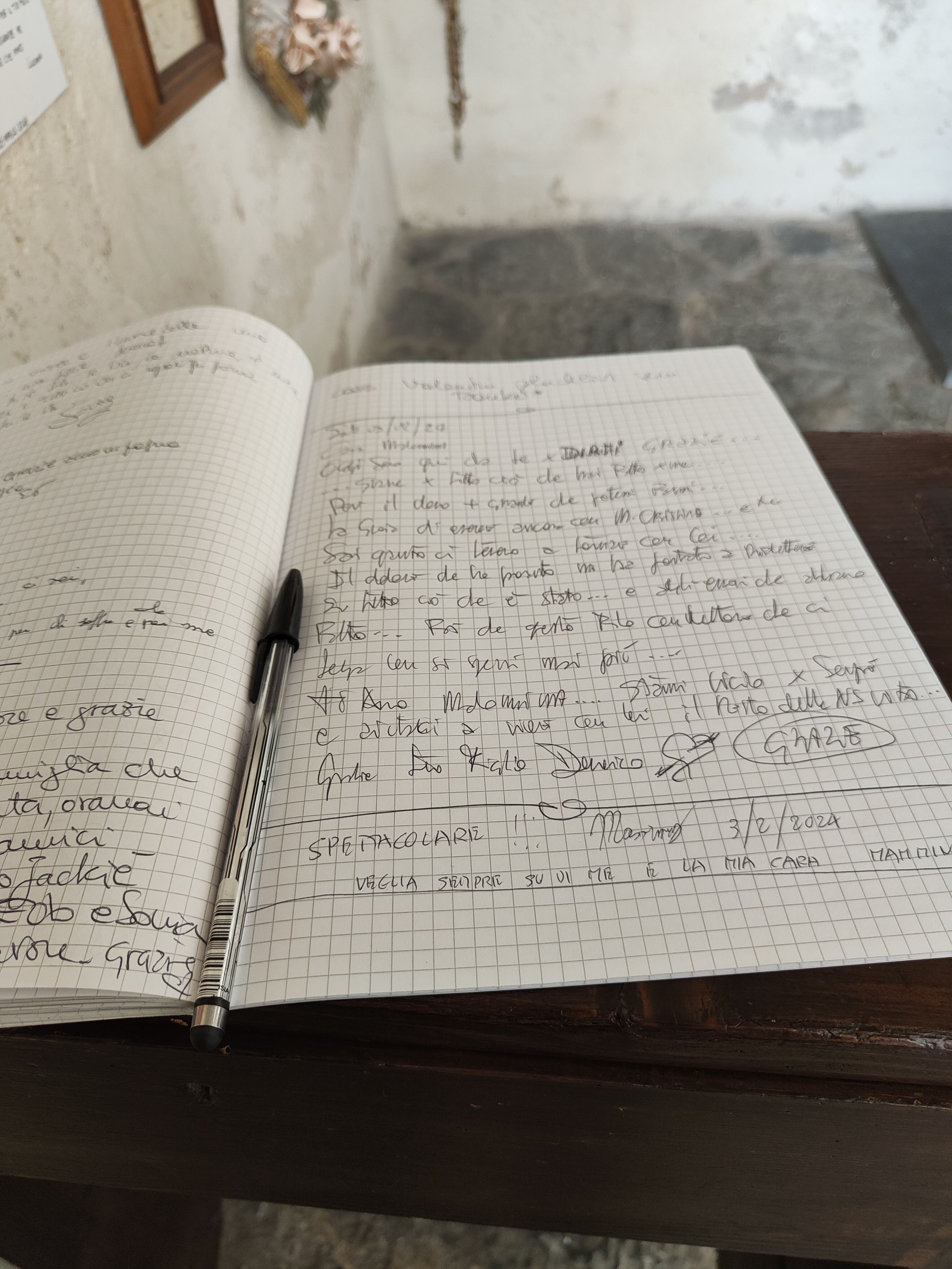 Prima di uscire ognuno può lasciare la sua firma e un pensiero su un quaderno, io ho espresso il mio pensiero per me e la mia cara mammina, un gesto di amorevole bontà verso colei che mi ha dato la vita. Ognuno di noi deve sempre essere riconoscente verso la propria madre, fintanto che ha la fortuna di poterla avere…