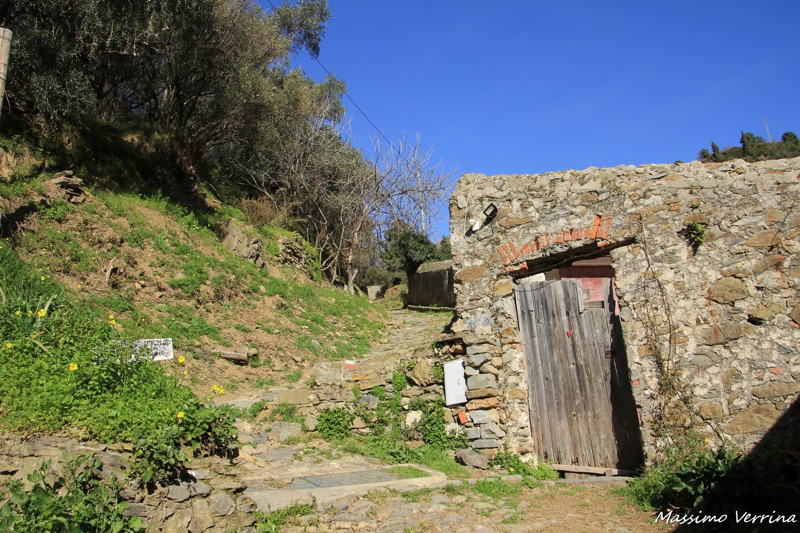 Il primo tratto di salita fa già sudare parecchio, in estate c’è da morire, consiglio di fare questo itinerario in tutte le altre stagioni, ma non in estate, qui il caldo dovuto all’esposizione prevalentemente a Sud si fa sentire davvero tanto. Salendo ecco che passiamo accanto a qualche casa antica e a qualche piccola azienda agricola. Il cielo limpidissimo ci regala scenari fantastici…
