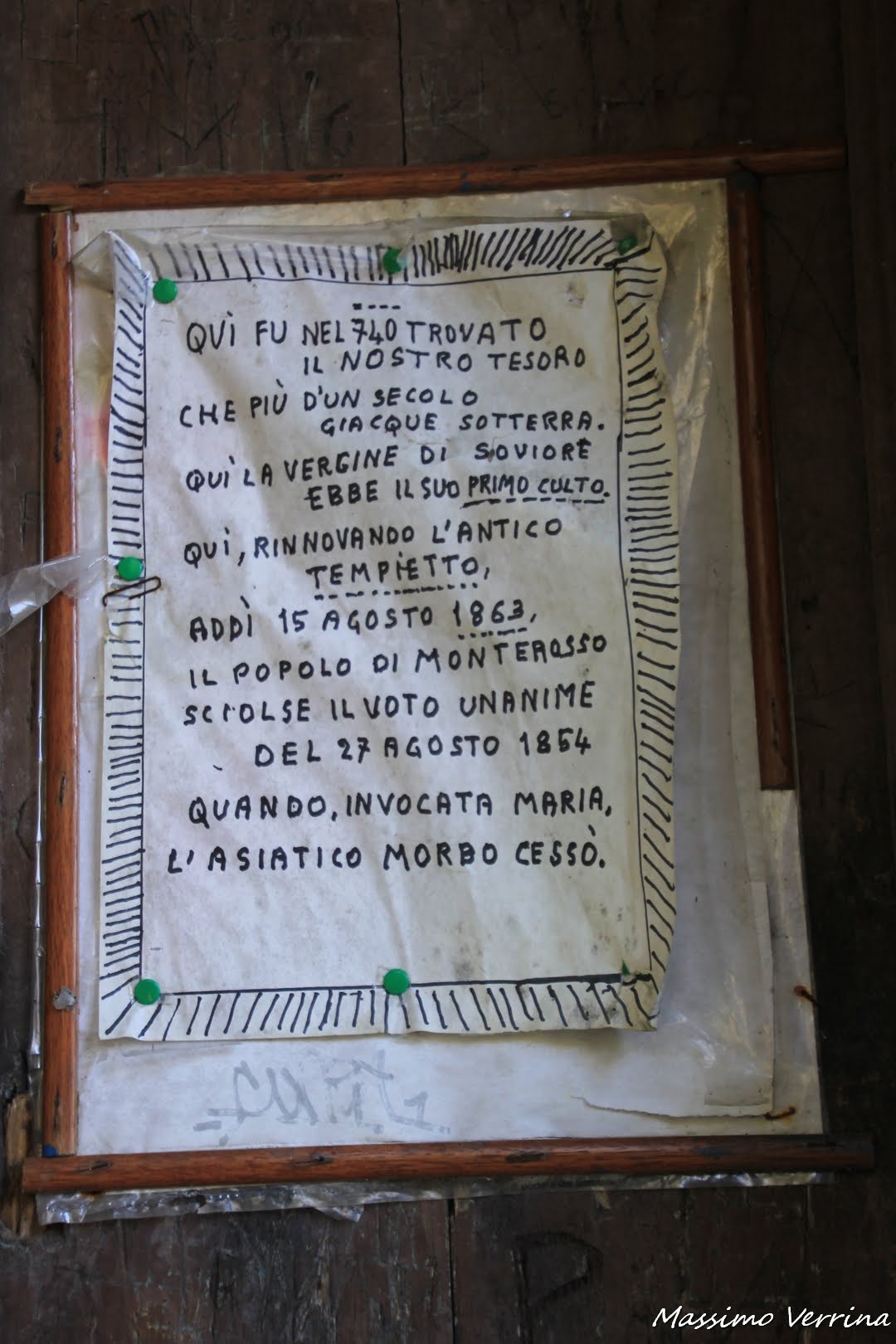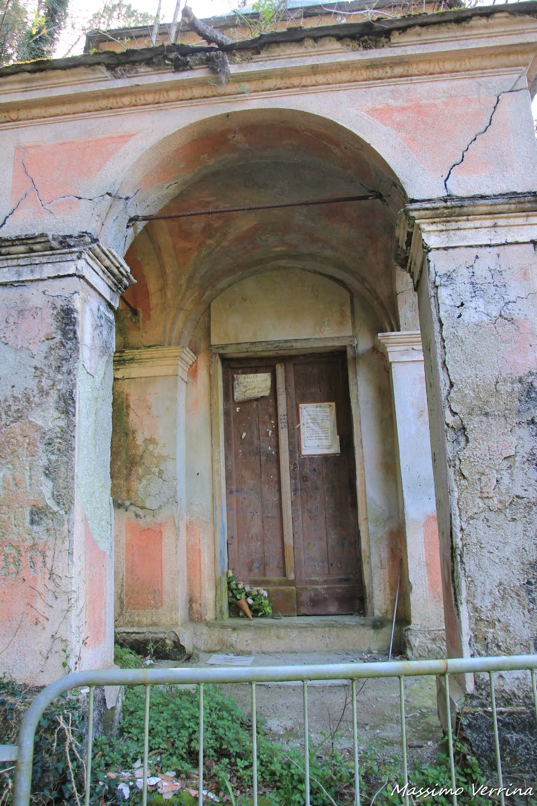 il sito storico è transennato, il pericolo di crolli è alto ed è vietato avvicinarsi alla struttura, tuttavia un cartello sulla porta attira la mia curiosità, mi avvicino per vedere di cosa si tratta….