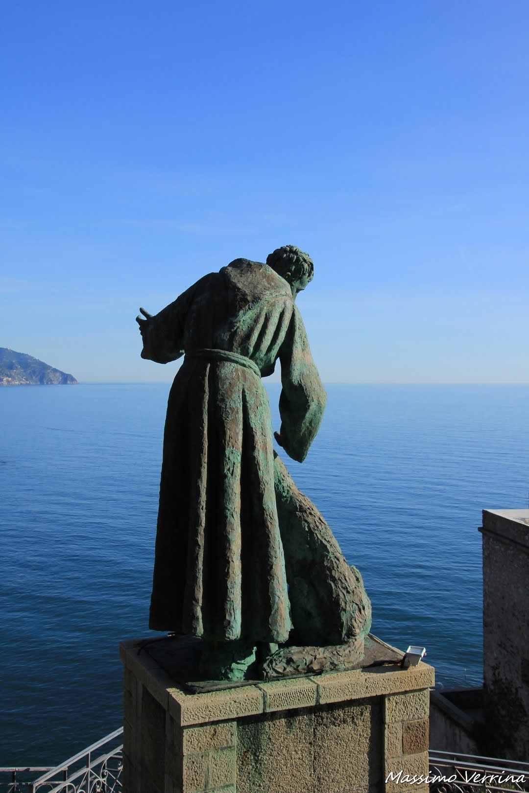 Ma le sorprese di questo territorio non finiscono qui, infatti più in alto troviamo la Statua di San Francesco affacciata su un panorama unico. Ve la faccio vedere prima da questa prospettiva per cogliere l’immensa distesa blu del mare di fronte a noi..