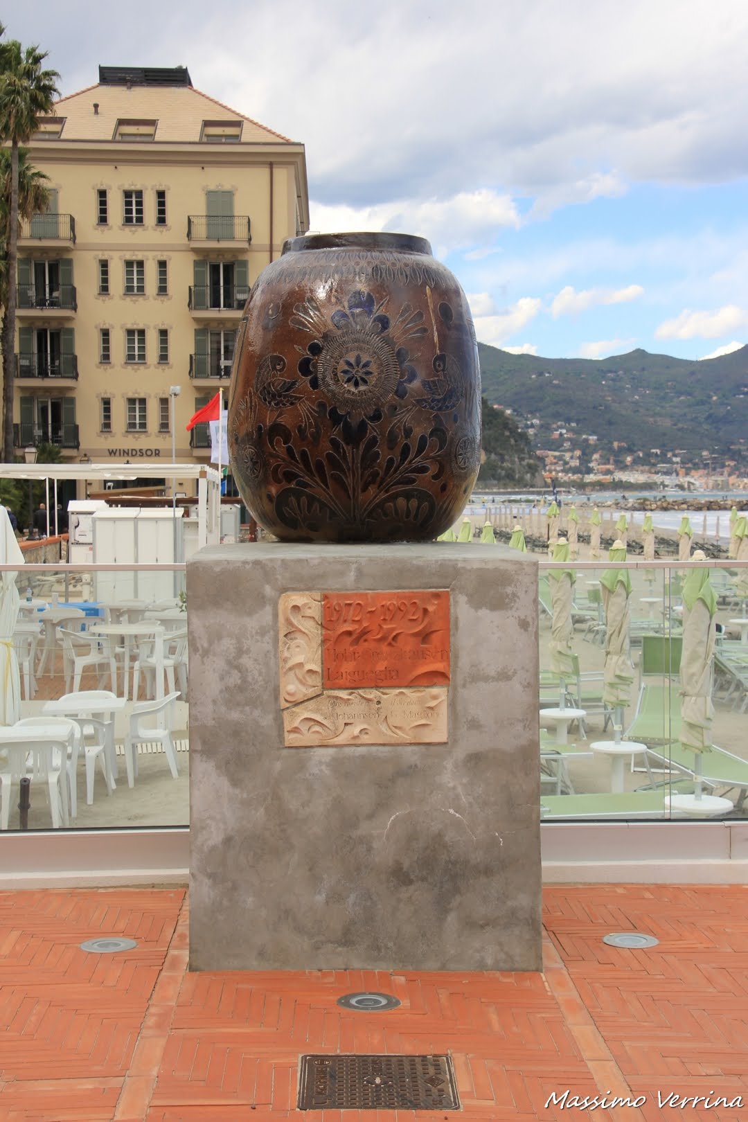 In uno slargo della passeggiata troviamo questo vaso monumentale assai curioso, bello a vedersi, subito alle spalle degli stabilimenti balneari…