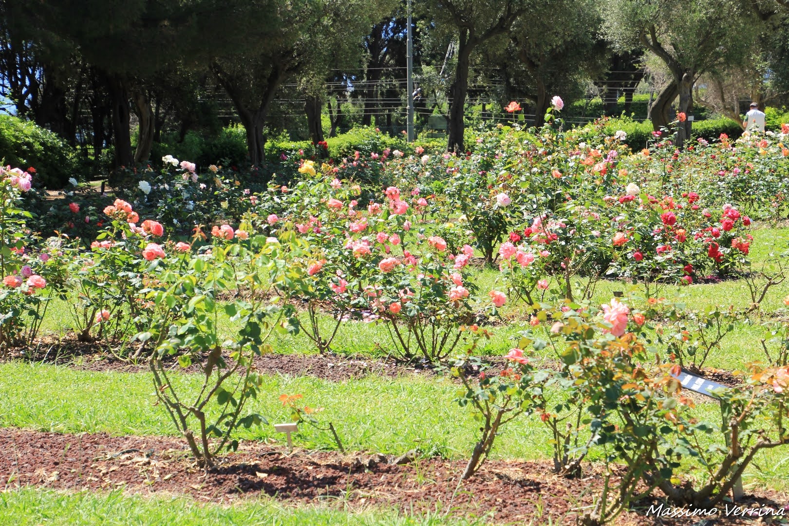 La prima rosa che vedete all’inizio della riga centrale nel prossimo scatto è la Rosa di Genova. La vedrete da vicino più avanti, per ora volevo farvi vedere la visione d’insieme di questa parte di Roseto…