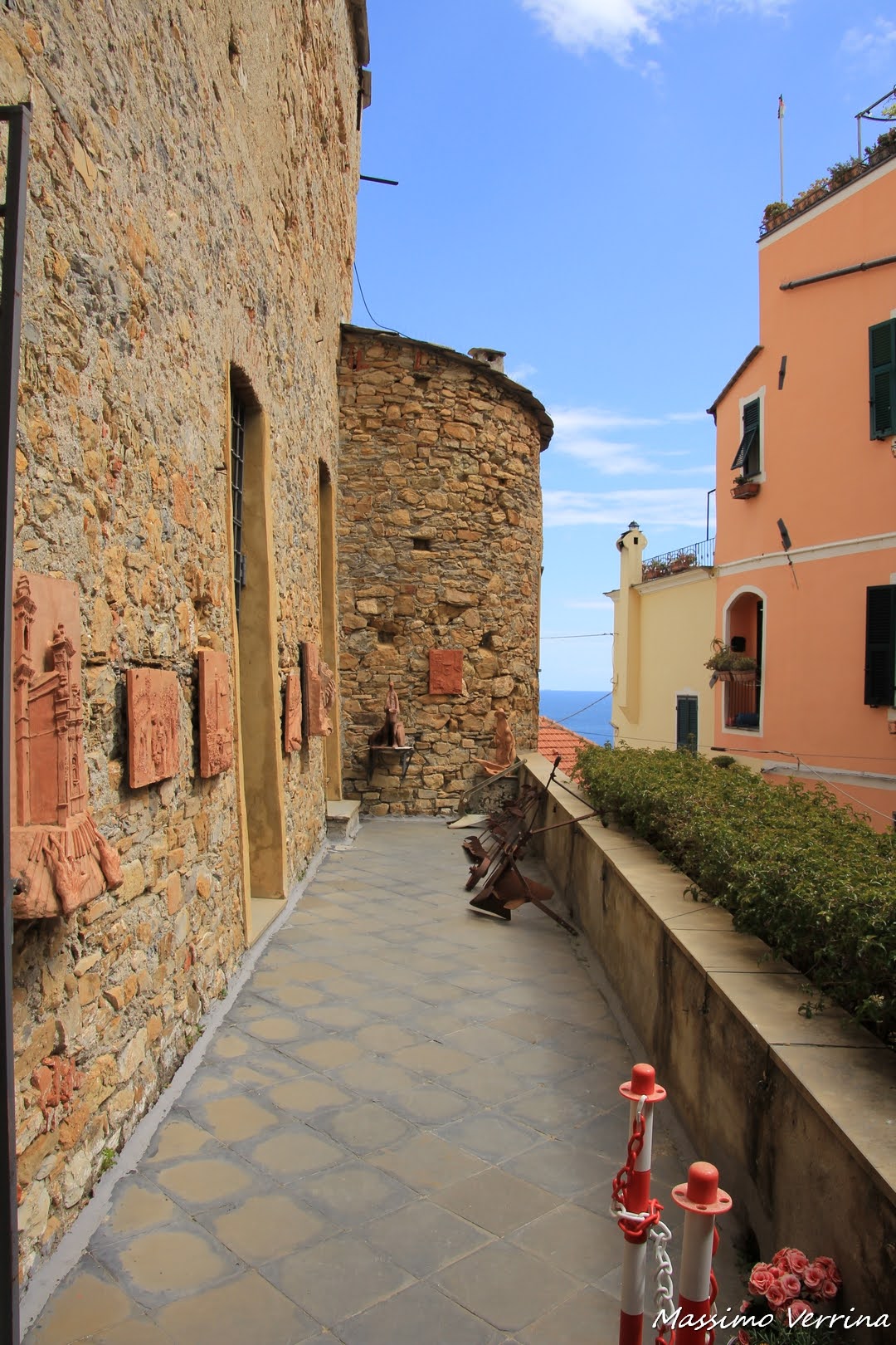 Siamo arrivati nella parte più alta del borgo, qui sorge il Castello Clavesana, visitabile, è chiuso solo al lunedì, ma ha degli orari, è aperto al mattino dalle 10 alle 13, e il pomeriggio dalle 14,30 alle 16,30. Quando sono passato io era nella fase di chiusura, per cui vi farò vedere solo gli esterni. Qui possiamo ammirare delle bellissime lavorazioni in terracotta e degli attrezzi di vecchi mestieri…