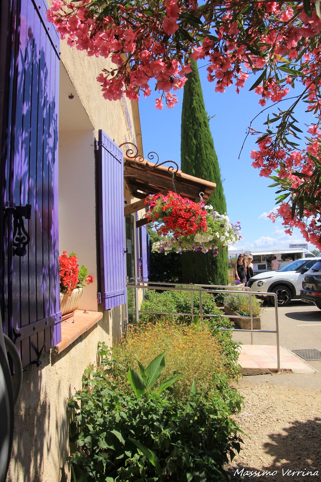 Nel prossimo scatto potete vedere il negozio dove ho fatto acquisti visto da un’altra prospettiva, qui è bello osservare il gioco di colori tutti incentrati sulla lavanda, che si confonde con le tinte chiare del cielo….
