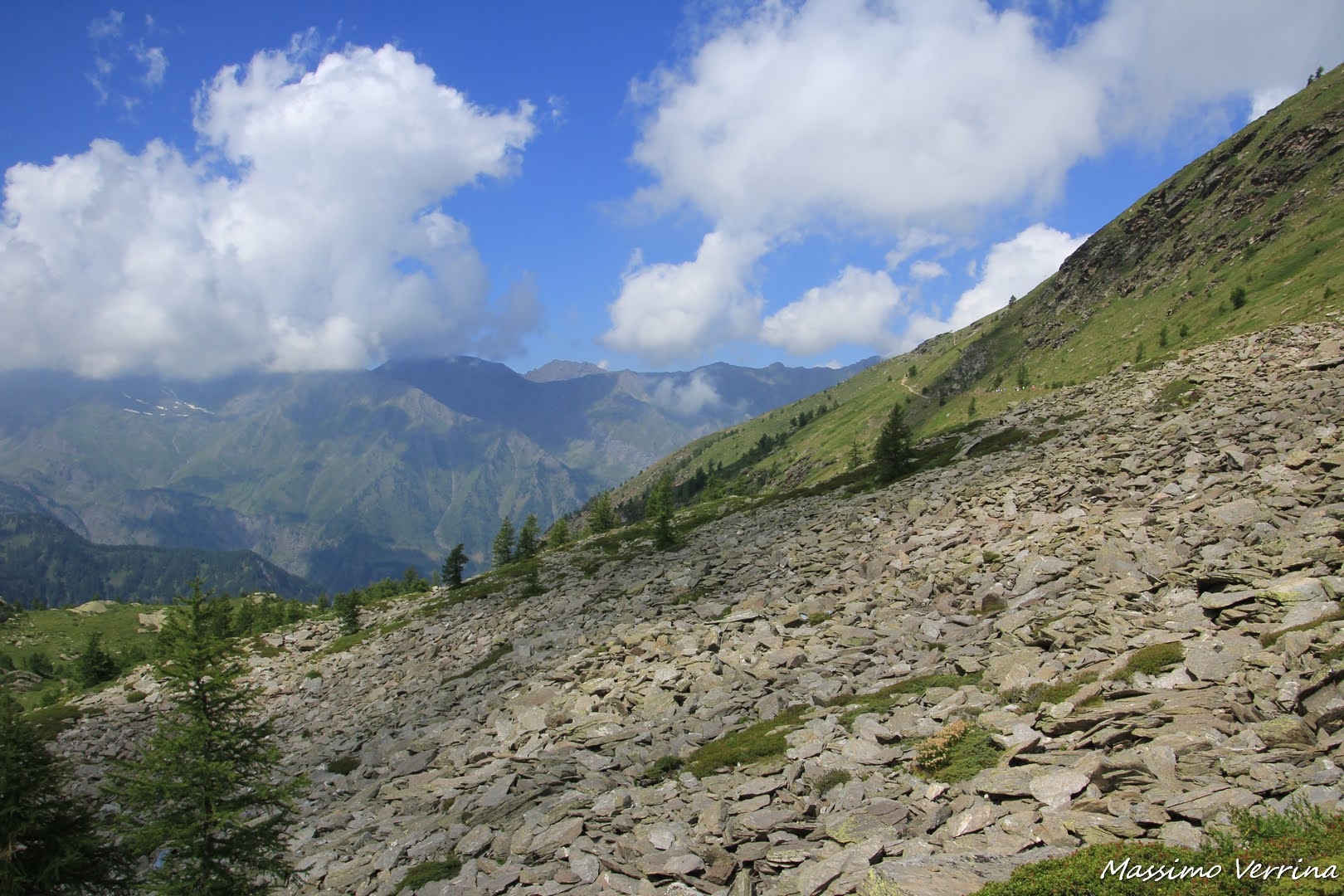 Abbiamo già percorso molta strada, ho appena attraversato una pietraia di origine glaciale, si nota molto bene le varie pietre fratturate dal movimento del ghiacciaio verso valle. Purtroppo ad oggi non rimane più nulla di questi antichi ghiacciai, ma i segni che hanno lasciato ci raccontano la loro presenza…