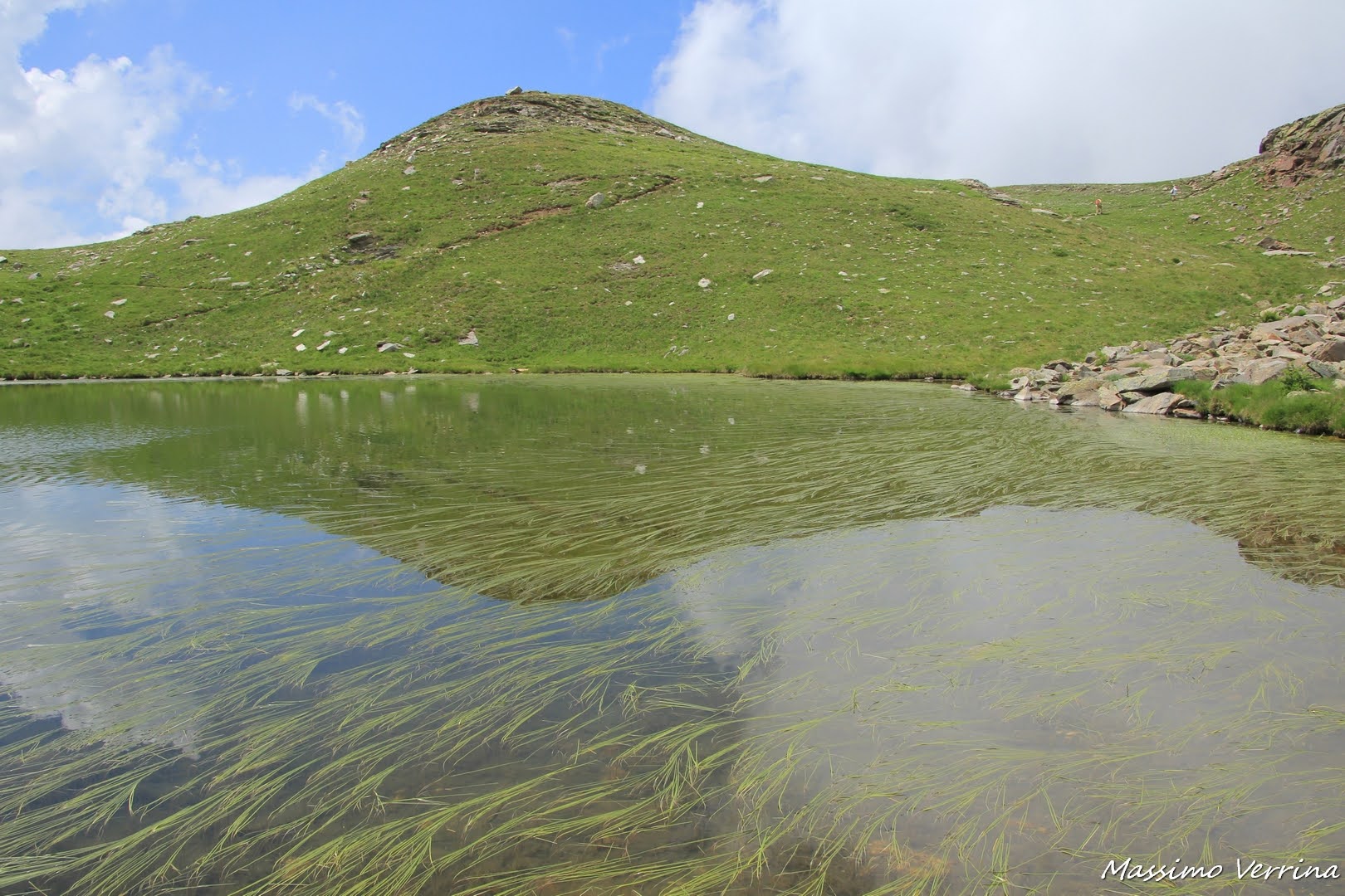 Dopo un bel tratto di cammino, e aver notato uno dei laghi in secca, eccoci giunti attorno ai 2600 metri per ammirare l’ultimo lago di questo giro, è un lago molto particolare, è quello che contiene una pagina storica davvero importante, la vedremo col post di domani. In questo post voglio farvi ammirare la bellezza di questo lago al di fuori del suo contesto storico, ovvero solo dal suo punto di vista naturalistico….