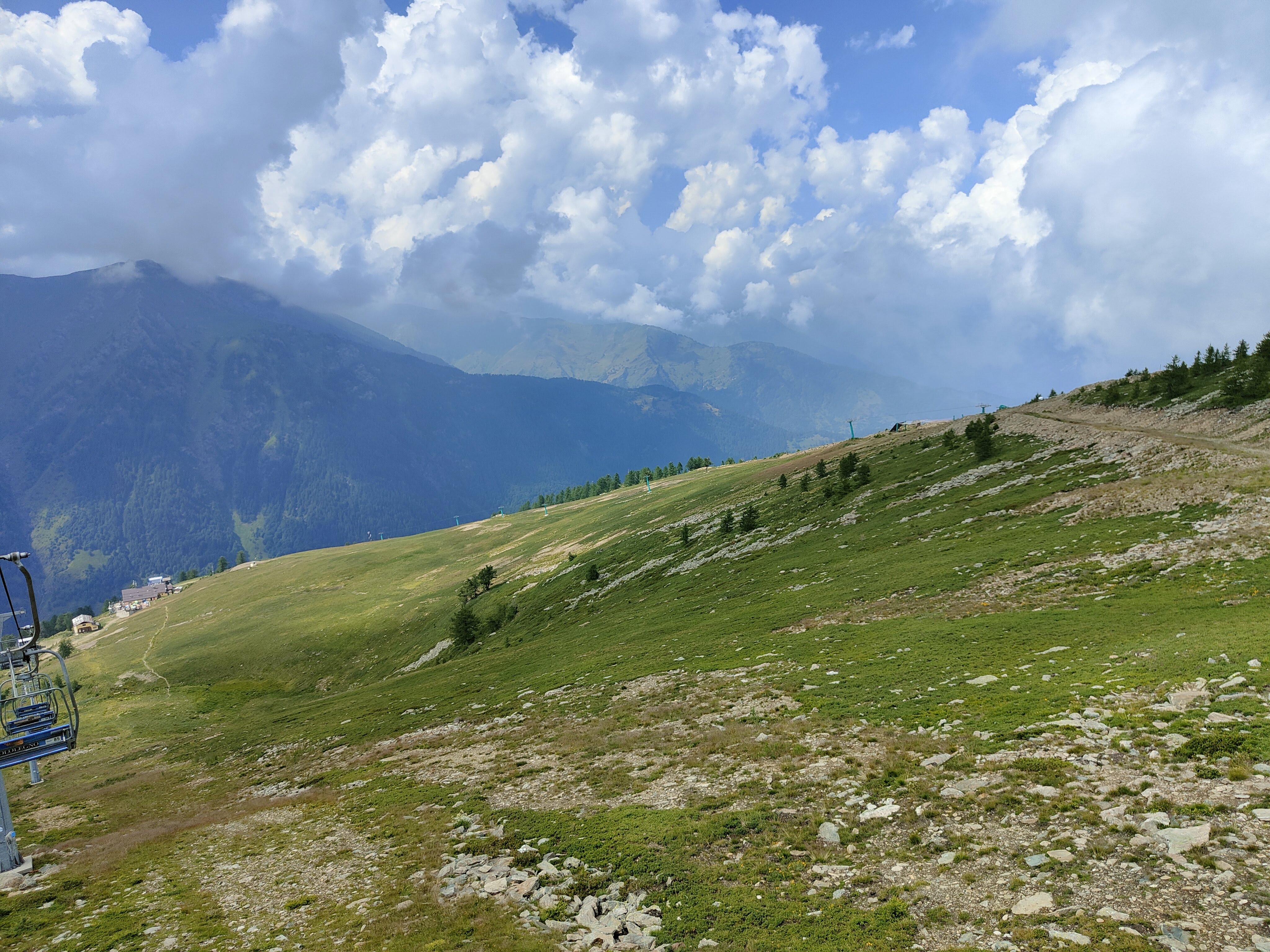Questo tratto di seggiovia è così lungo che quasi ti dimentichi da dove sei partito quando arrivi in fondo 😁😁😁😁😁, in compenso ti regala scenari a dir poco unici. Per fortuna che non era piovuto, qui se uno becca del maltempo non ci sono scampi, se la prende tutta, e per tanto tempo anche, della serie arriveresti in fondo come appena uscito da una piscina 😁😁😁