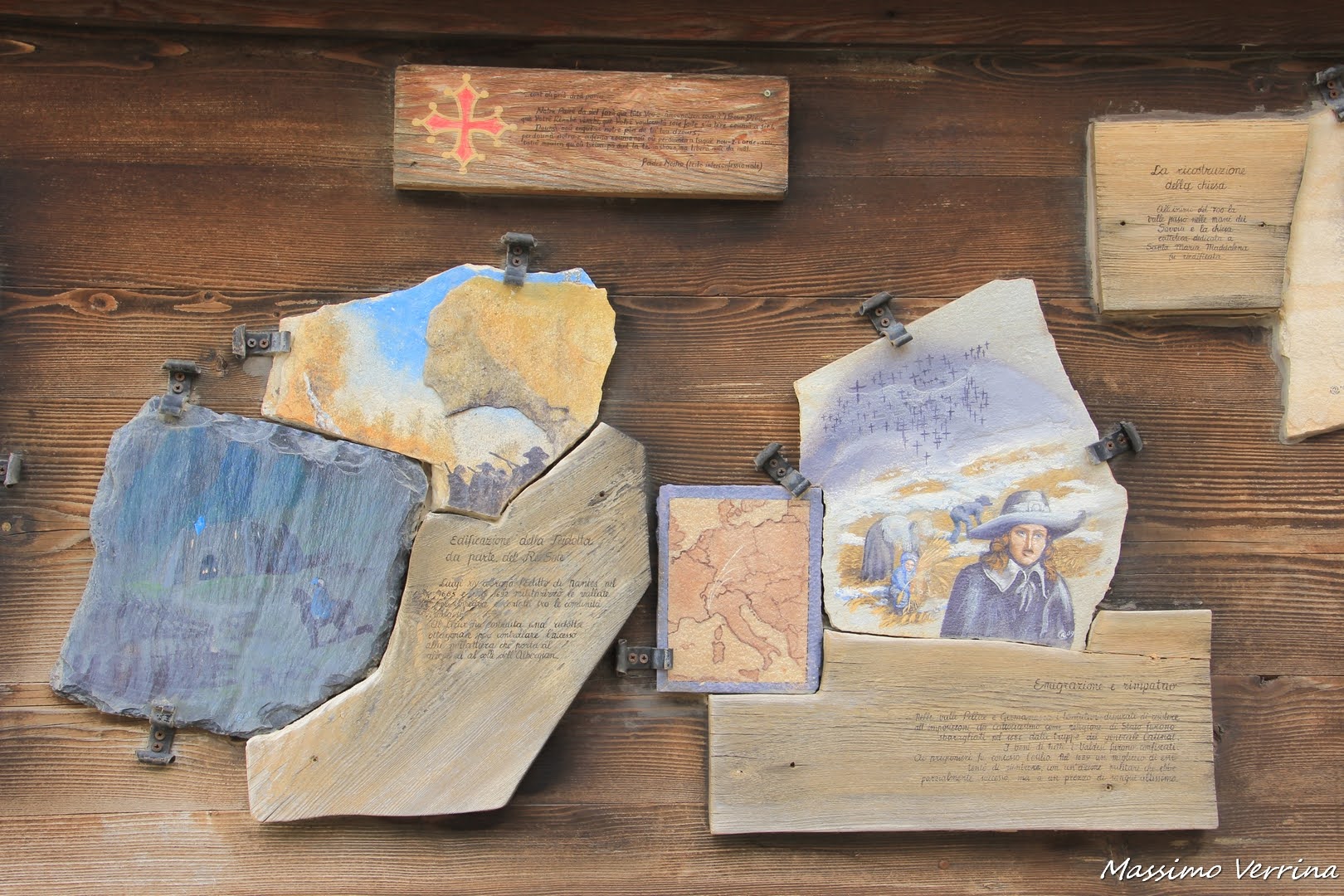 Peccato che tu non abbia spiegato che quelle immagini rappresentano la storia di persecuzione che è successa nei confronti dei Valdesi, religione protestante, da parte dei Cattolici.