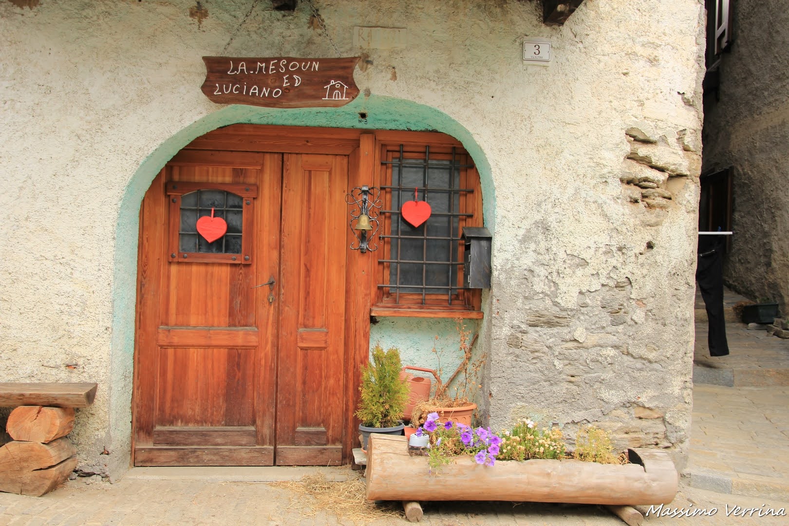 A giudicare dagli addobbi si direbbe che qui abiti un romantico, mi hanno subito colpito quei cuoricini rossi, un vero nido d’amore all’interno di un borgo da fiaba…