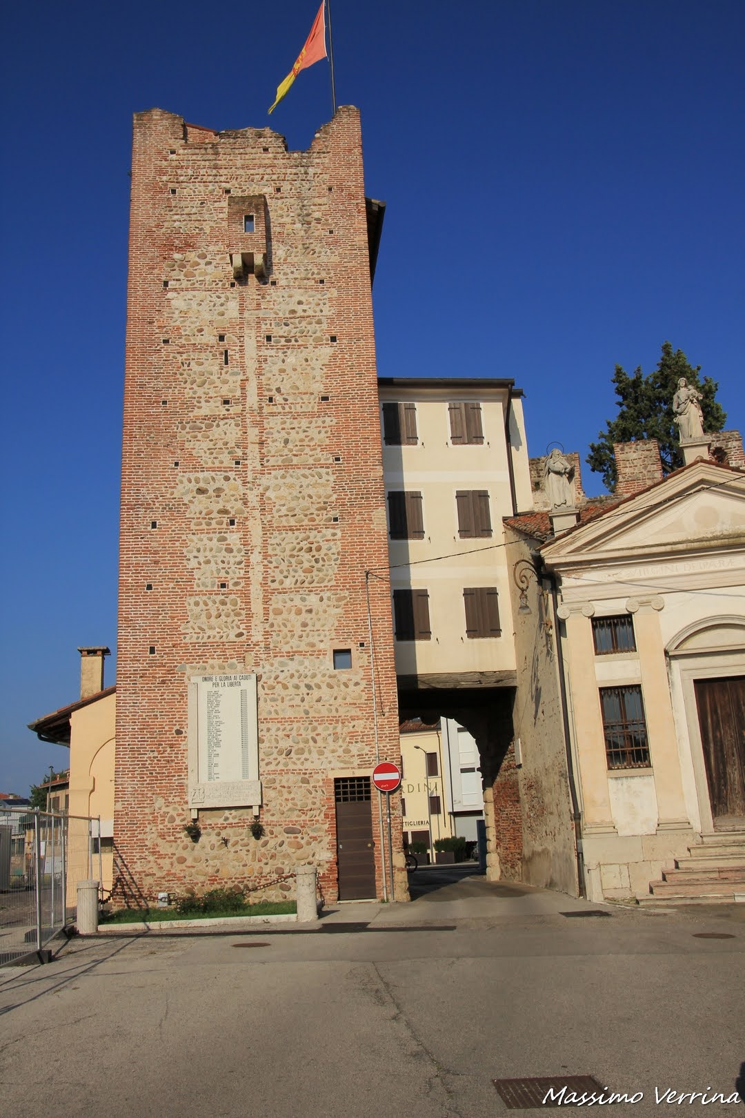 Torniamo ora ad immergerci nella sua parte storica, lo facciamo attraversando un’altra porta cittadina, passando accanto ad una bellissima torre storica che ricorda i caduti per la libertà. Il cielo limpido di quel giorno unito alle colorazioni calde del tardo pomeriggio contribuiscono a rendere ancora più bello questo nuovo scorcio urbano….