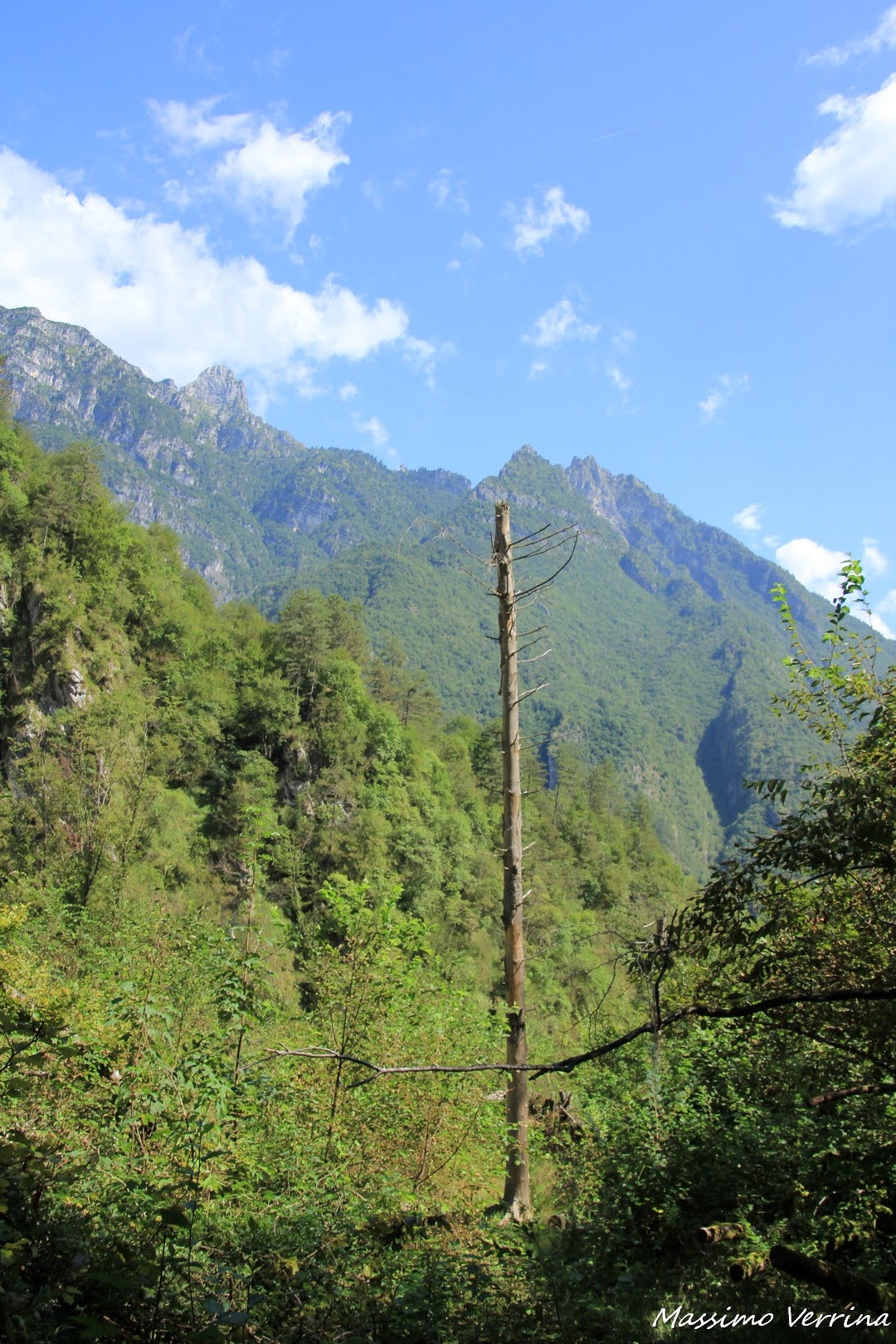 In questo mare di verde ecco spuntare un albero spoglio, tagliato a metà, probabilmente colpito da un fulmine durante un temporale. Questo accostamento particolare l’ho trovato interessante per il prossimo scatto…