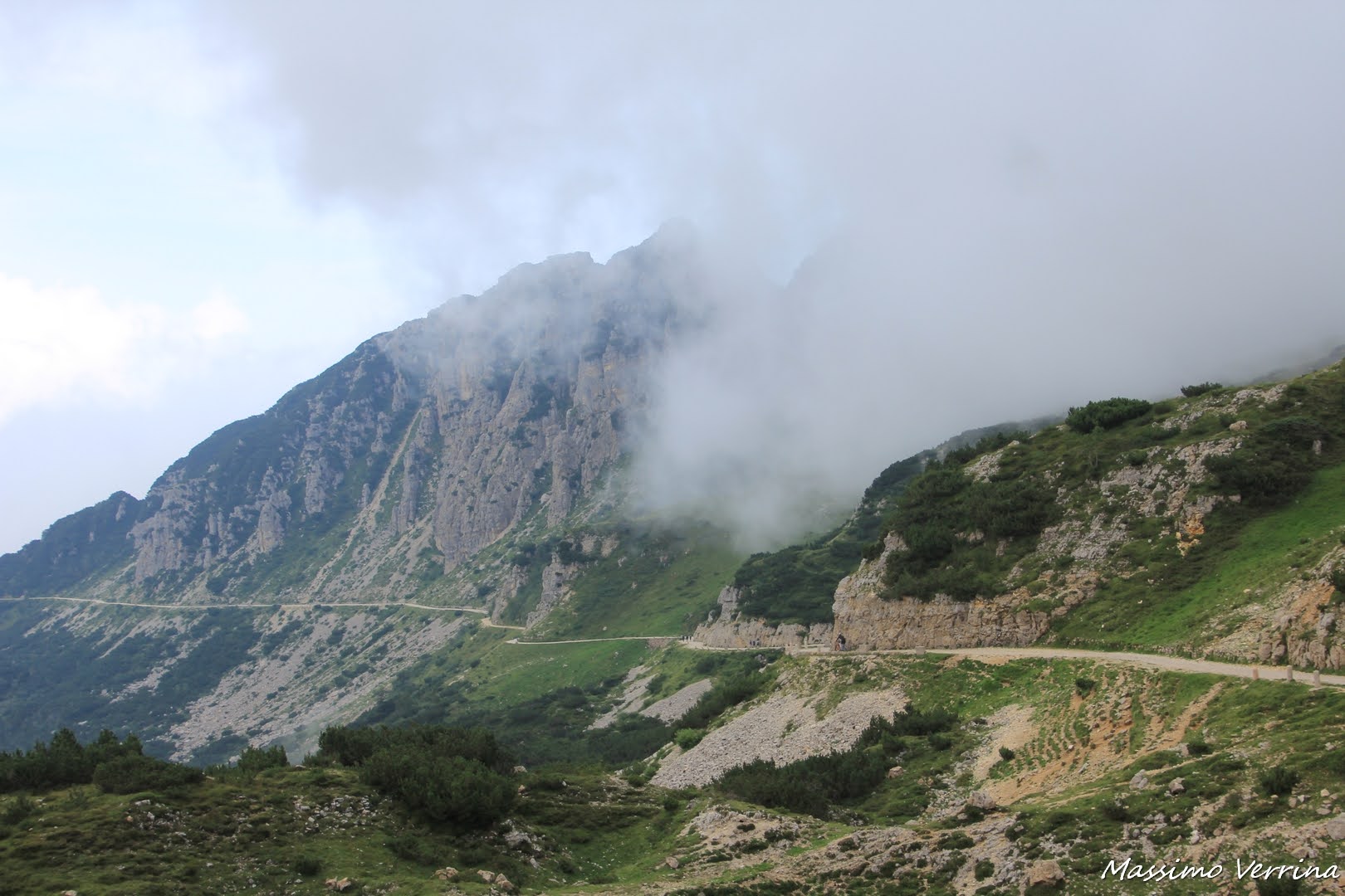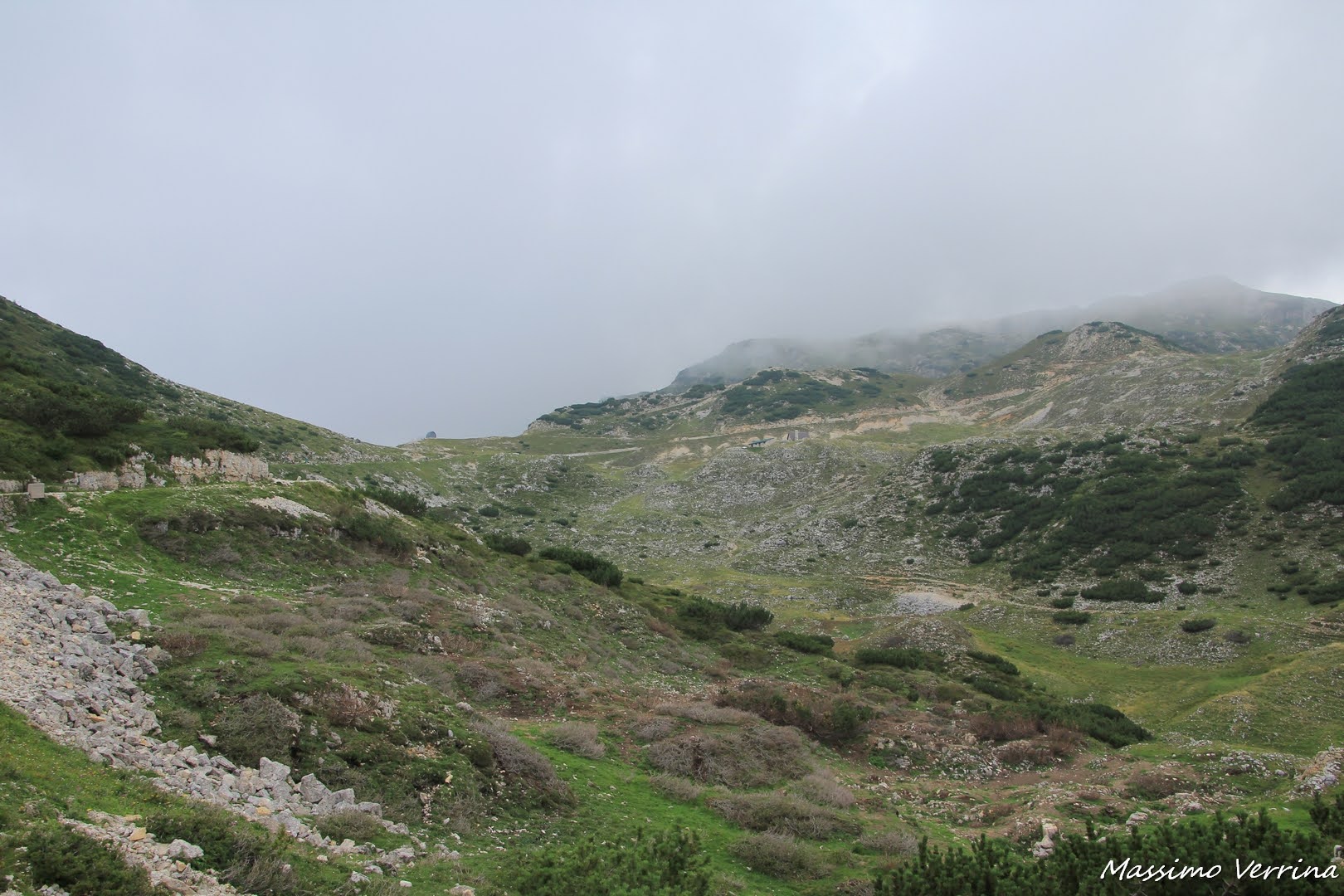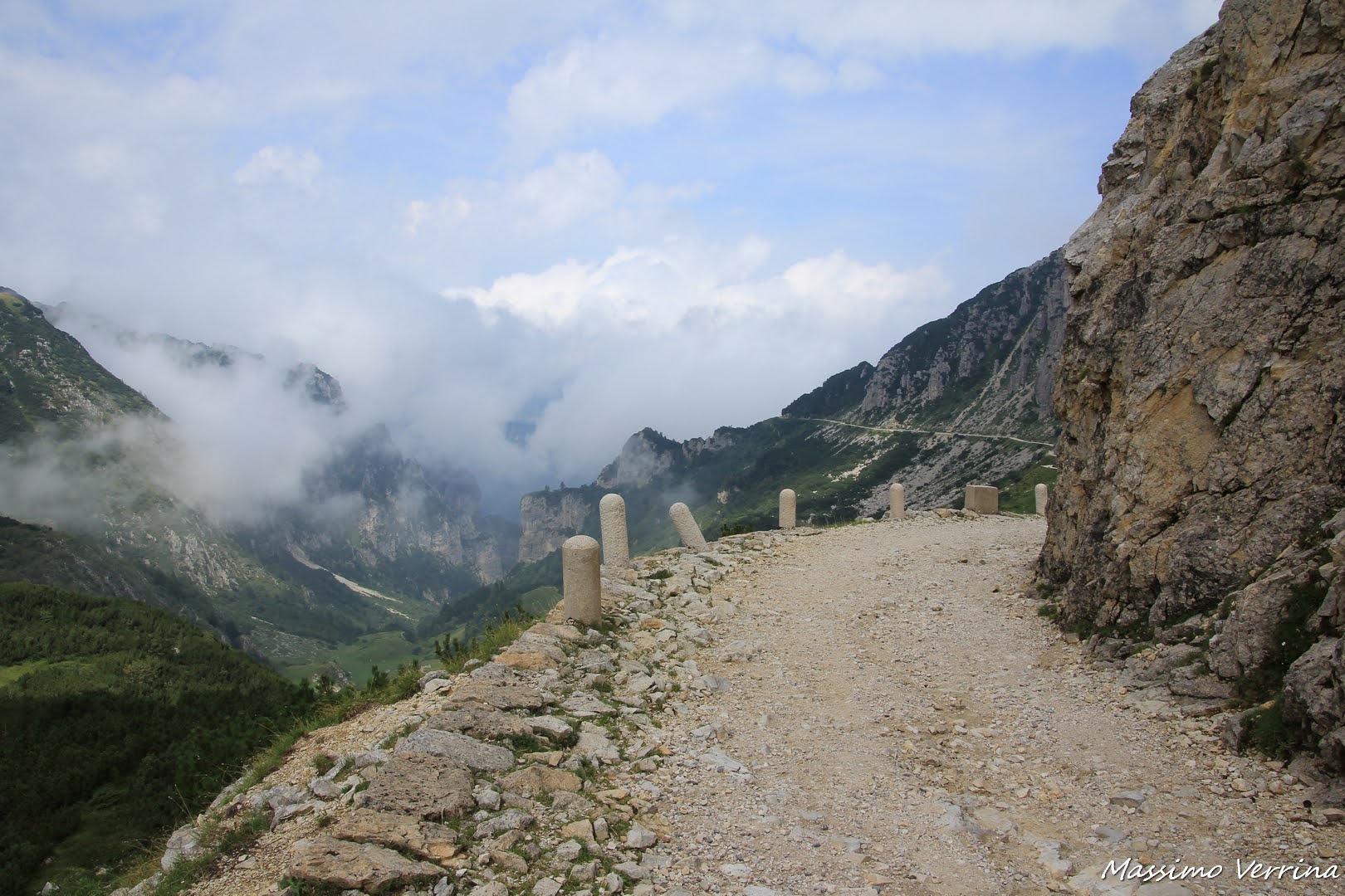 Al giorno d’oggi questa strada sterrata viene usata per portare i viveri al Rifugio, dove avevo appena pranzato, e costituisce anche un’ alternativa per raggiungere il Rifugio stesso per coloro che non se la sentono di affrontare il percorso più impegnativo dell’altro versante…