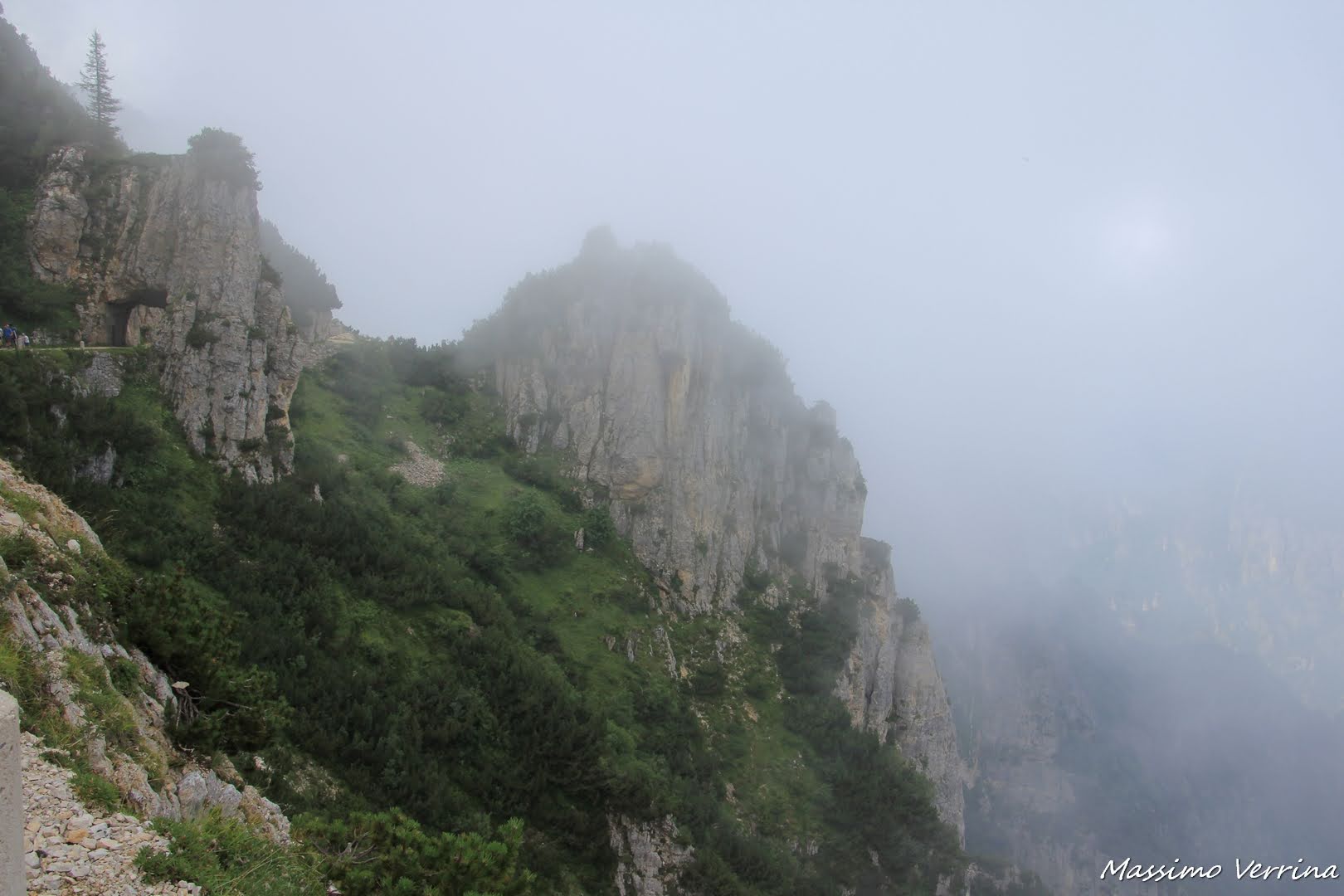 Era anche tornata un po’ di nebbia a rendere ancora più emozionante questo passaggio fra le rocce, qui come potete vedere la strada taglia in due la montagna…