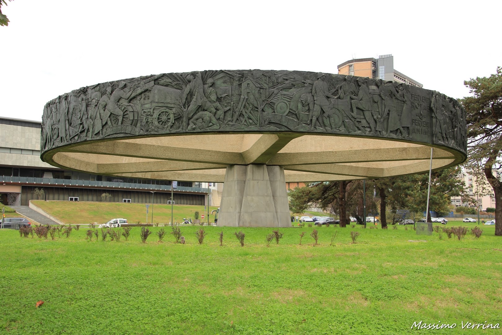 Nel frattempo ho raggiunto il Museo dell’automobile, che troneggia dall’altro lato della strada. Qui all’interno di un prato verdissimo, con uno scoiattolo pronto per farsi fotografare, troviamo una curiosa installazione artistica…