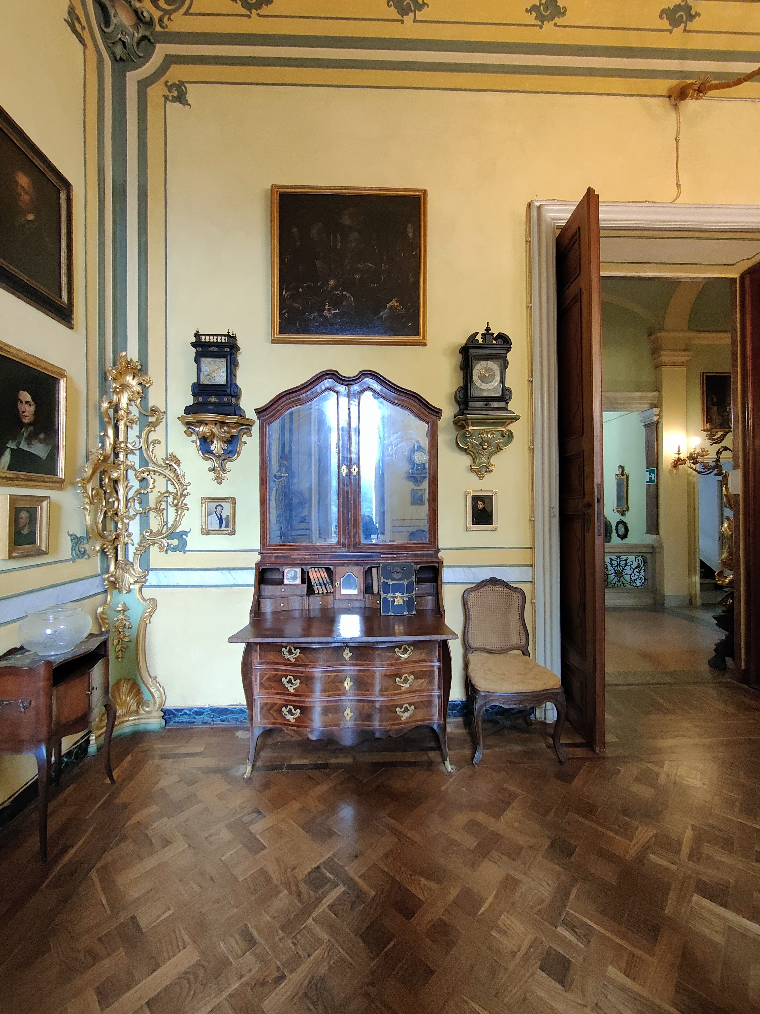 Fra i tanti oggetti che troviamo in questa sontuosa dimora storica c’è anche questo bellissimo pianoforte. Solo a vederlo sembra già di sentirne echeggiare le sue note..