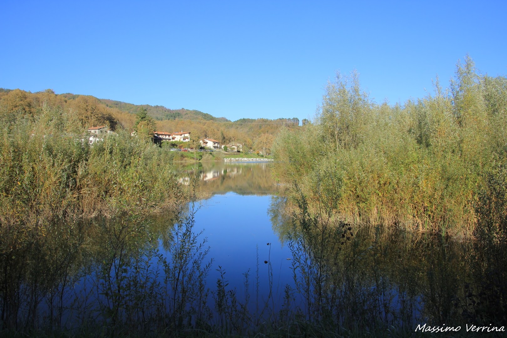 Camminare nel verde rilassa e apre la mente, spesso durante queste camminate mi vengono in mente bellissimi versi poetici, alcuni dei quali di tanto in tanto li aggiungo alle narrazioni. Stiamo sempre camminando lungo le sponde del lago, qui si attraversa il rio che alimenta il lago, io però ho fatto un giro più lungo per andare dall’altro lato….