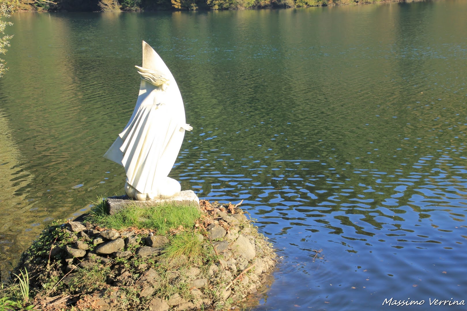 Mi sposto velocemente verso l’altra parte del lago, per cogliere ancora le ultime luci del giorno, e andare a scoprire le ultime sorprese di questo lago. E’ qui che scopro questa bellissima e originale statua, un misto di fede e natura che ben si armonizza col resto del territorio…