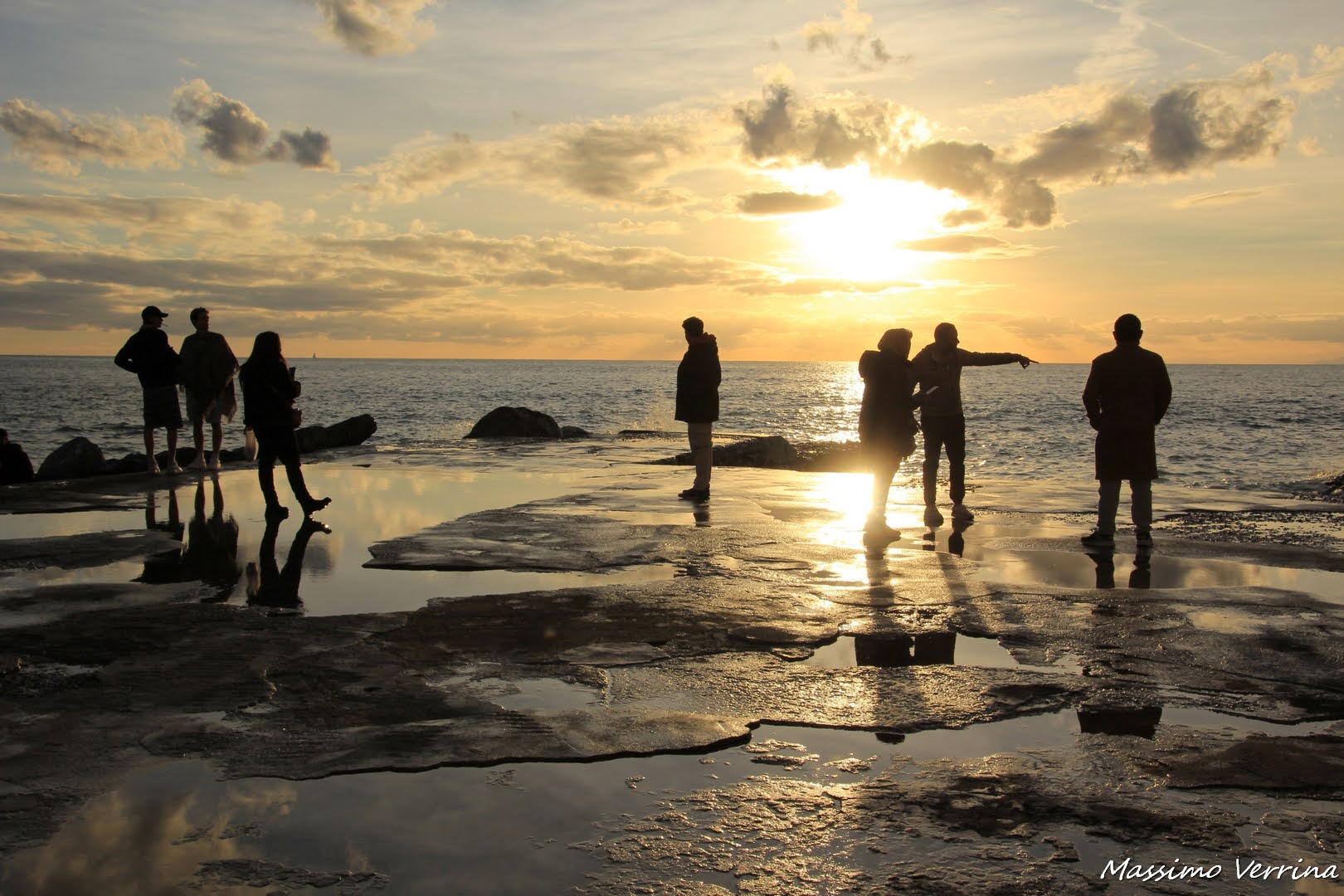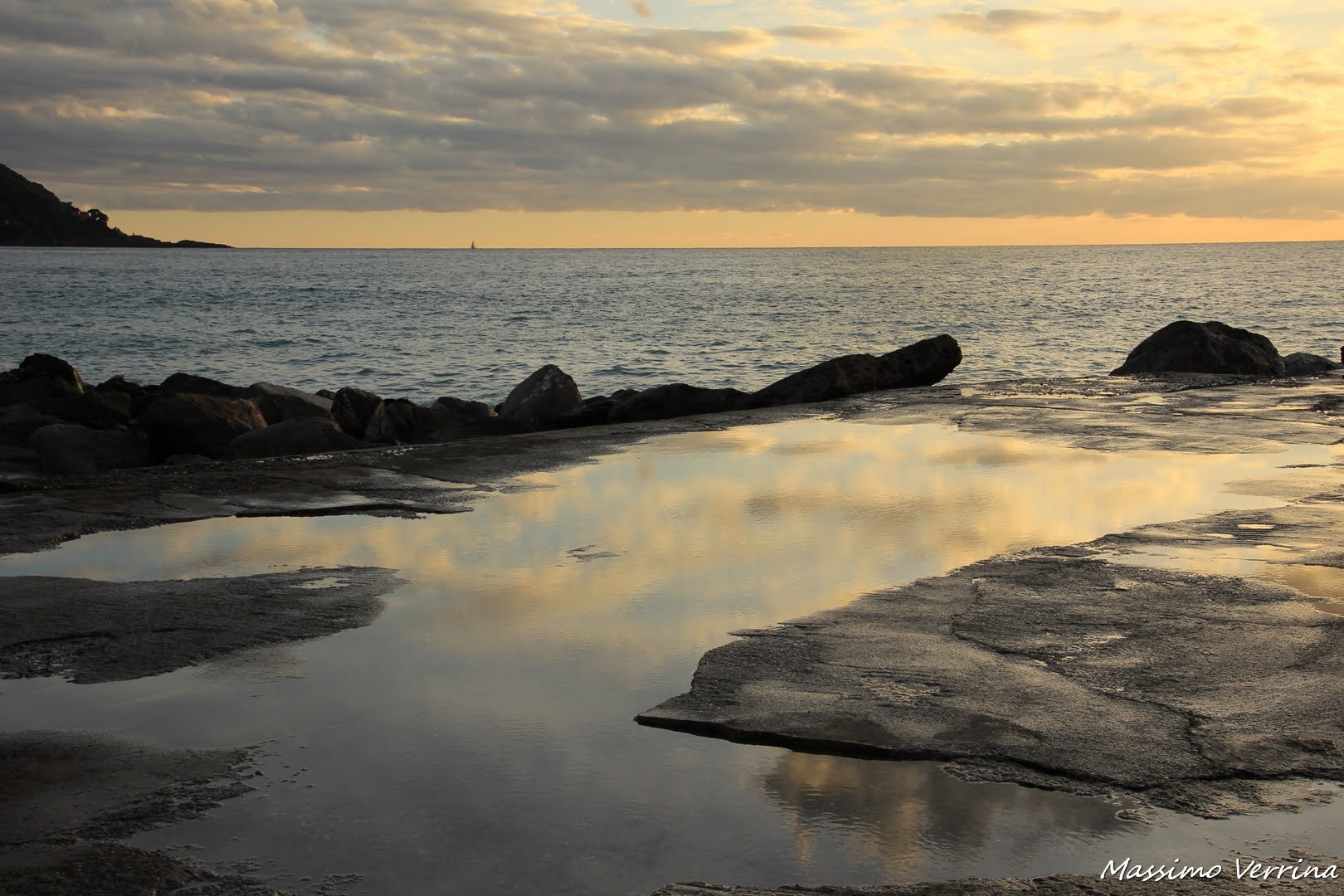 Sabato scorso c’era ancora un residuo di mareggiata, tanto che le onde saltavano sul molo, creando pozze d’acqua dove specchiare la poesia di un tramonto magnifico….