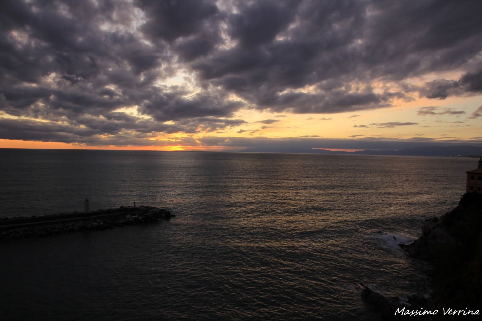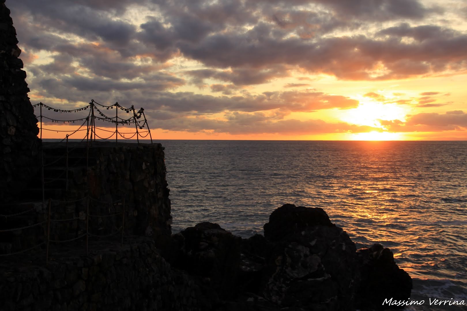 Mi sono spostato in un punto molto romantico e particolare allo stesso tempo, mi trovo ai piedi del Castello, sul piccolo promontorio che separa la parte del porticciolo dalle spiagge di levante. Qui attenderò il tramonto, e voi lo vedrete assieme a me….
