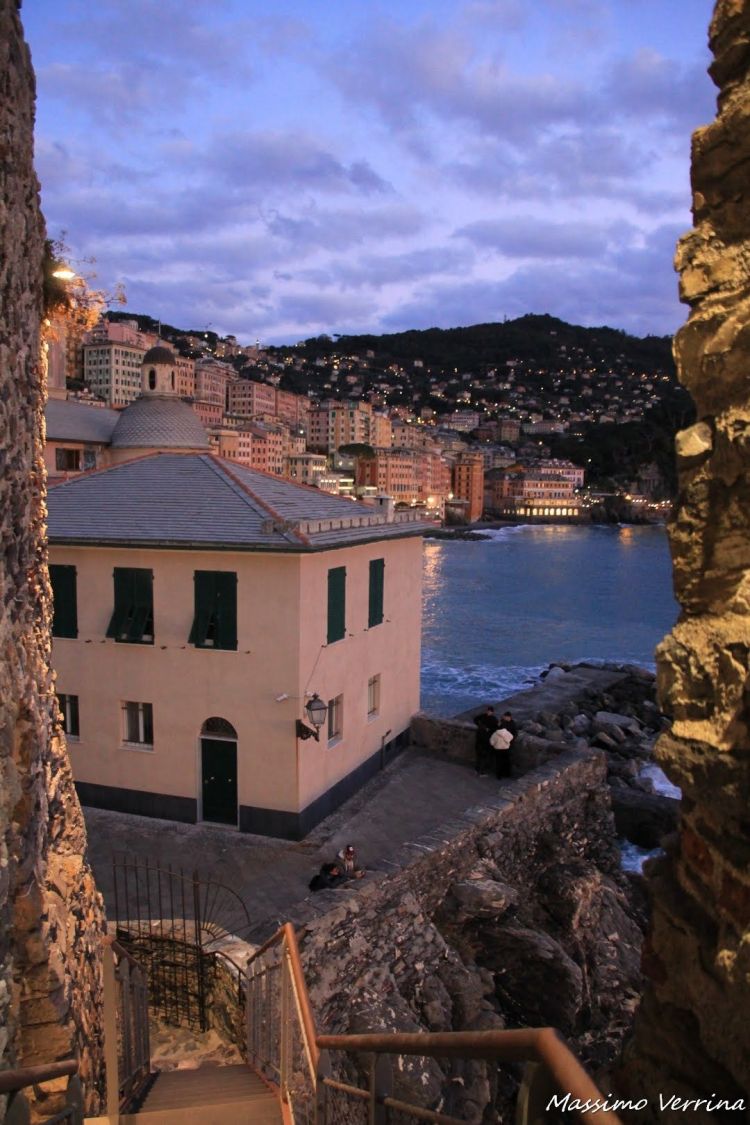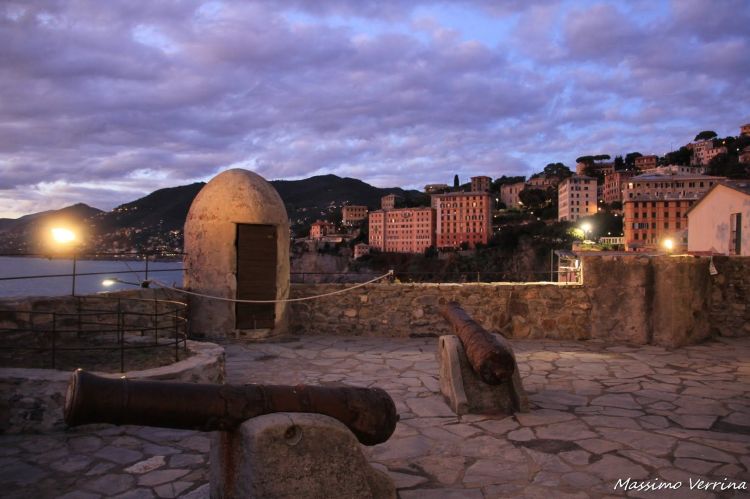 Le luci calde dell’illuminazione artificiale fondendosi con gli ultimi ricami del giorno creano un’atmosfera davvero particolare, tutto ciò mi ha permesso di cogliere al meglio la scenografia di questo importante simbolo storico di Camogli…