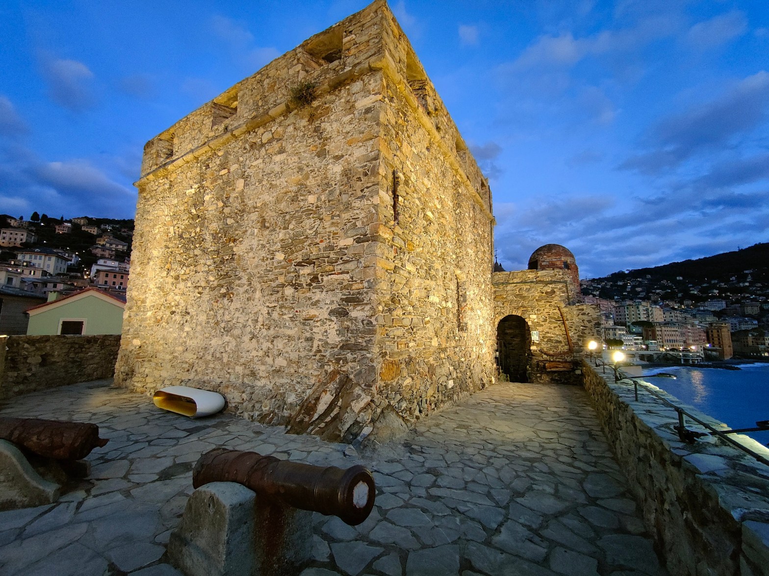 Le luci calde dell’illuminazione artificiale fondendosi con gli ultimi ricami del giorno creano un’atmosfera davvero particolare, tutto ciò mi ha permesso di cogliere al meglio la scenografia di questo importante simbolo storico di Camogli…