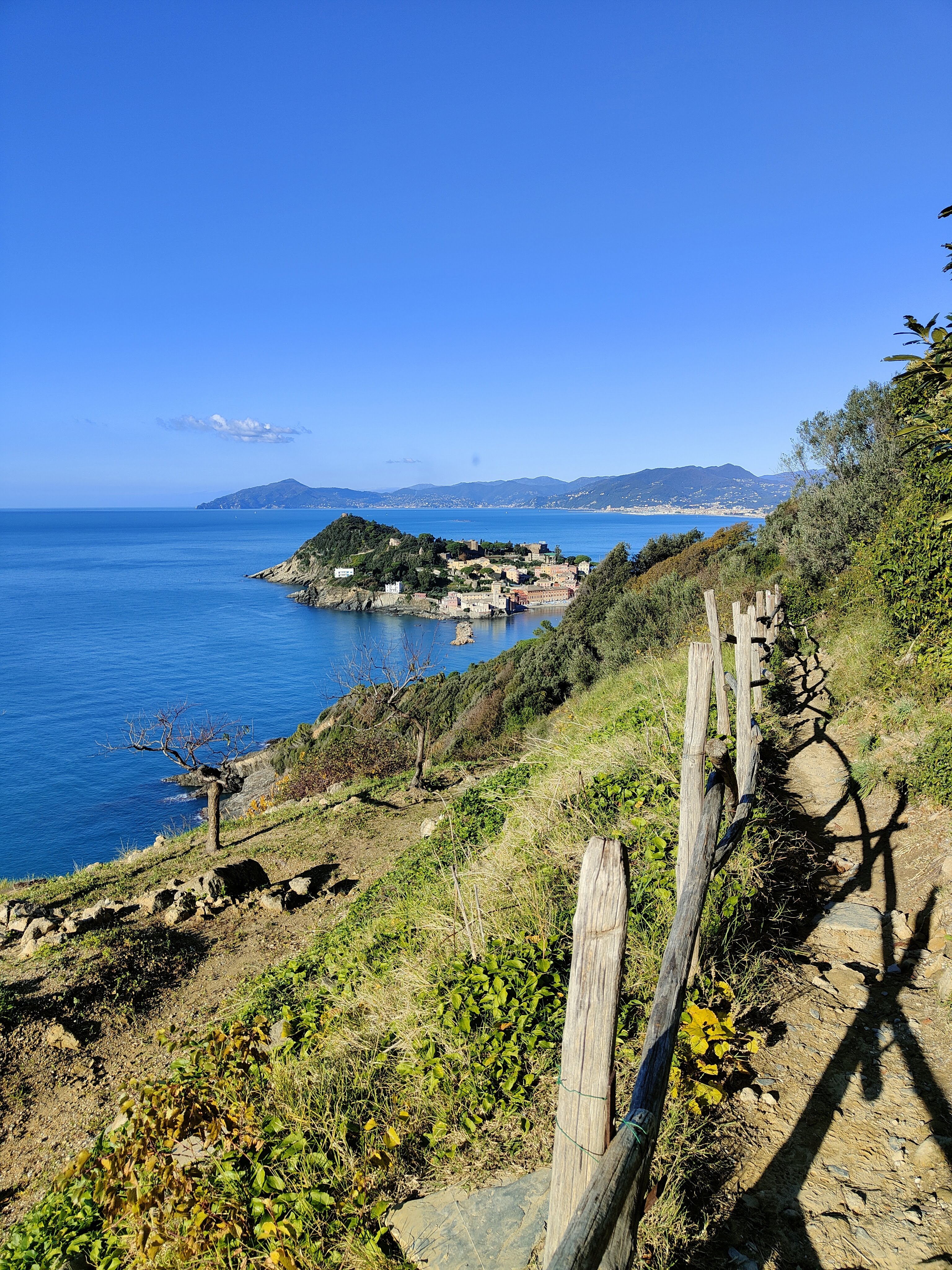 Salendo lungo il sentiero la vista su Sestri Levante e la sua baia del silenzio diventa ad ogni passo sempre più spettacolare, qui è un crescere di meraviglia allo stato puro….