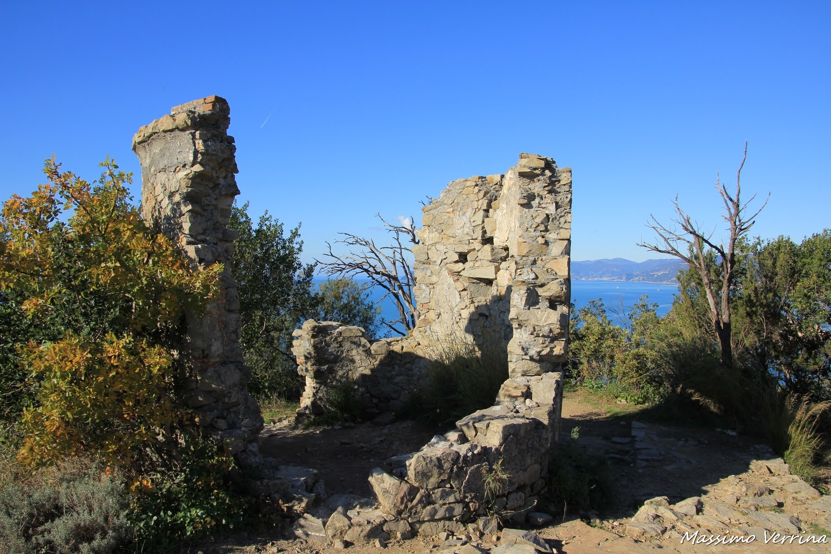 Ecco i ruderi di Punta Manara, ci troviamo nel punto più alto di questo promontorio, da qui la vista spazia ovunque, lo spettacolo è garantito…