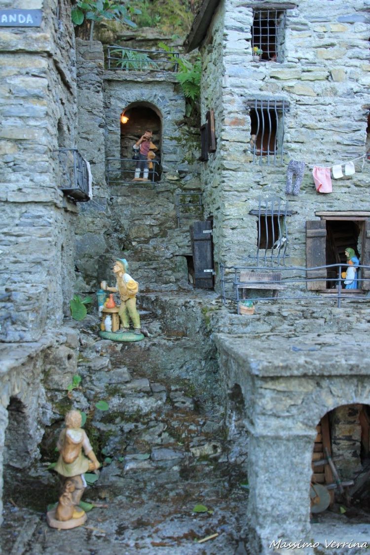 Infatti uno degli aspetti che rende unico questo Presepe, sono proprio i particolari delle varie case. Nel prossimo scatto ad esempio fra le tante cose si vede anche un passaggio interno che collega le due case affiancate, da dove si affaccia un uomo al balcone …