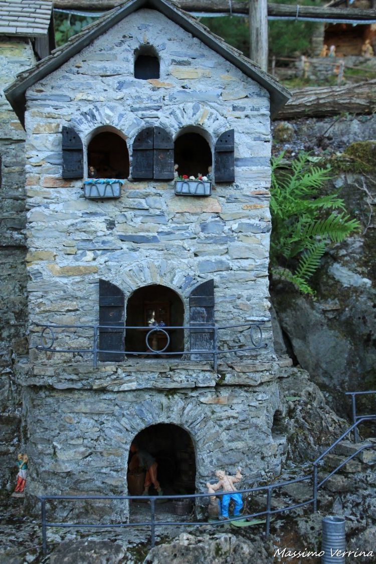 Una visione d’insieme di questa parte di Presepe ci permette di coglierne un altro aspetto, ovvero quello del borgo in se stesso, un gruppo di case in pietra aggrappate all’irto pendio, dove le rocce si contrappongono alle pietre stesse in una perfetta ricostruzione di questo borgo d’altri tempi…