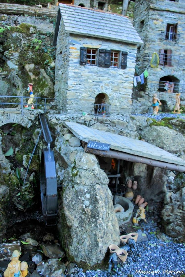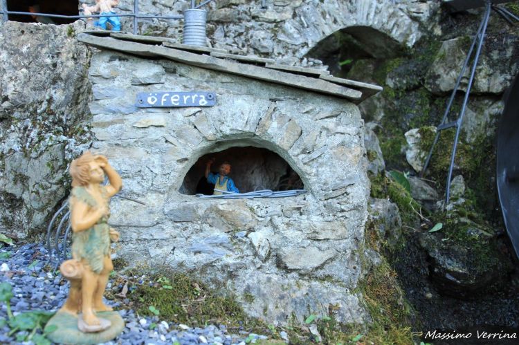 Cominciamo a vedere un po’ di dettagli di questo meraviglioso Presepe, ecco la ricostruzione di un frantoio, con tanto di movimento provocato dall’acqua. Qui la ricostruzione ha reso vivo uno degli aspetti di questo territorio nella sua storia, cogliendone proprio i particolari. Si vedono anche le olive nelle piccole ceste…