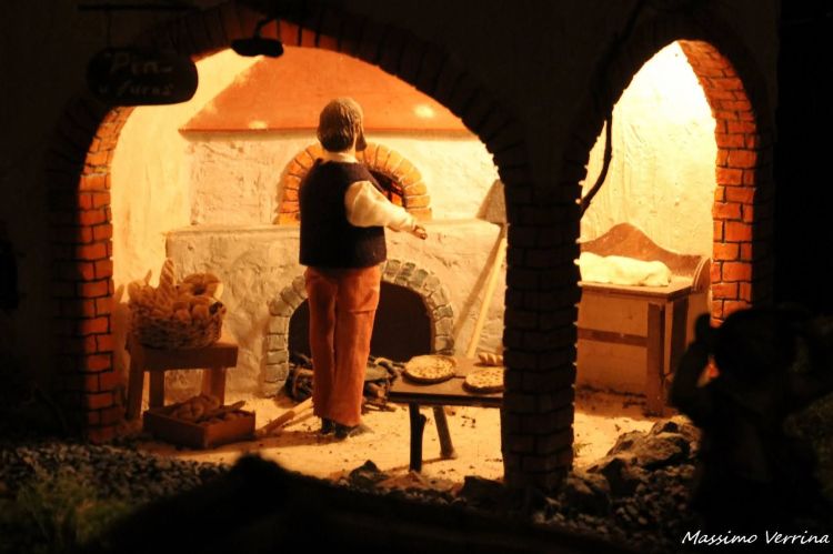 Ad attirare di più l’attenzione in questi presepi sono gli interni delle varie botteghe, ecco un fornaio con tanto di pane nelle ceste, in questo caso il realismo appare sorprendente…