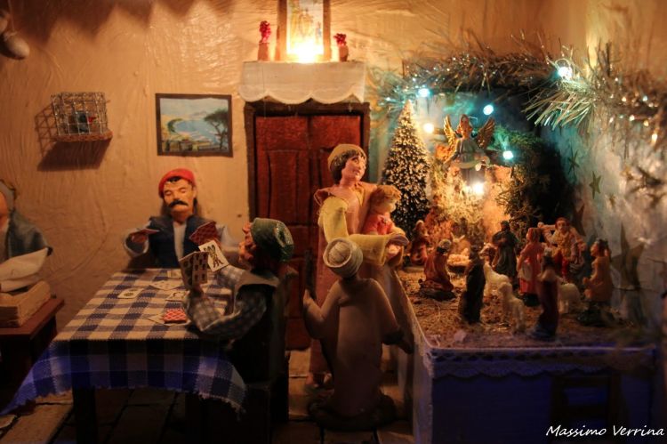 Quando si parla di capolavori sarebbero da citare anche presepi come questo, dove nulla è stato lasciato al caso. Dalla scelta delle luci alle varie scene rappresentate, qui tutto è perfetto. Andiamo a scoprire un meraviglioso interno, qui è come se foste invitati nella casa di questa famiglia…