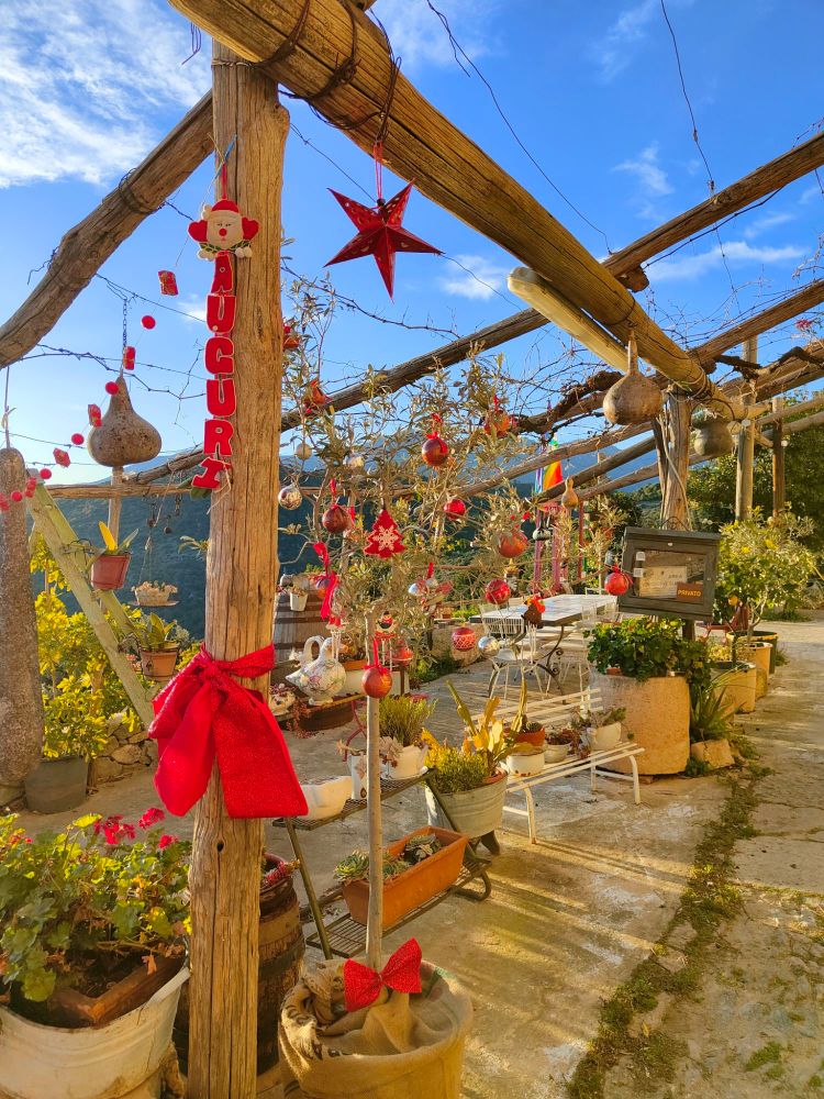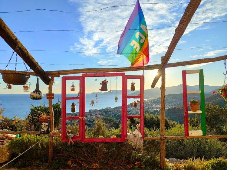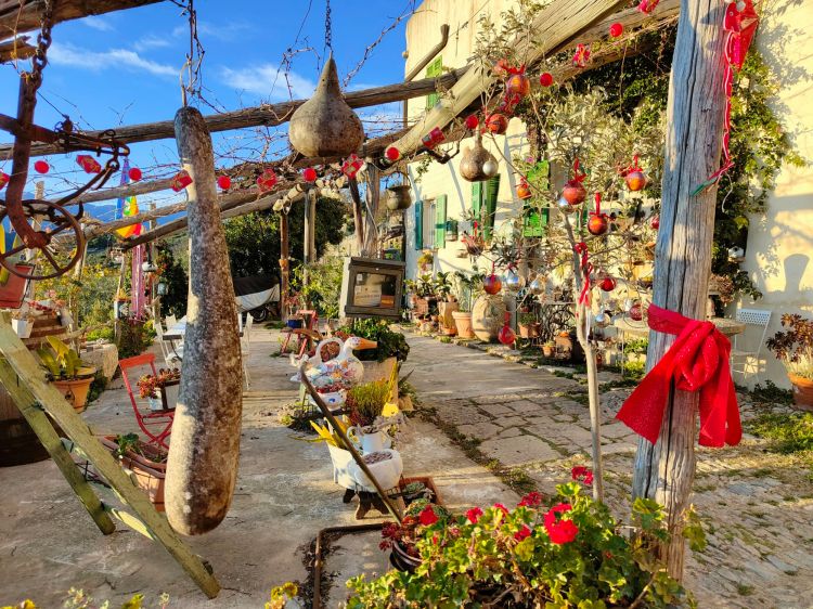 Ed ora vi porto subito ad ammirare una vera chicca di questo borgo, in realtà è una proprietà privata, ma qui i turisti impazzano per vedere le infinite decorazioni di questo spazio affacciato sul mare, qui si sogna e si viaggia in tutti i sensi…