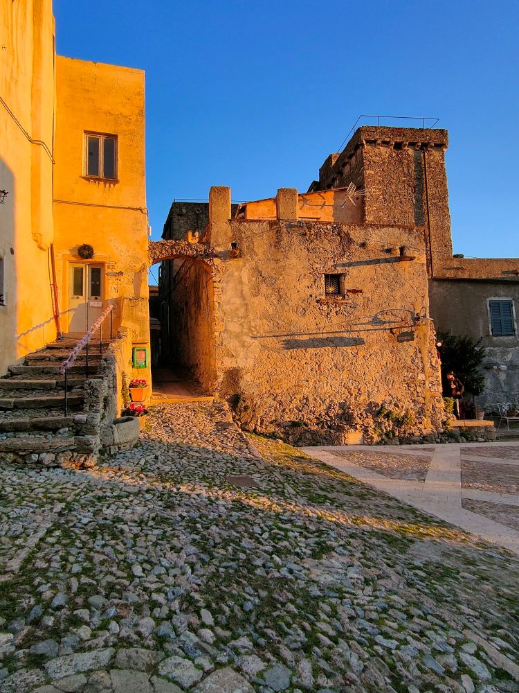 Ho aperto questa nuova puntata con la vista magnifica che questo borgo offre verso la costa, da sola fa capire che questo borgo merita di essere visitato. Ma oltre alle visioni pazzesche dei panorami, questo borgo offre scorci storici molto interessanti, che le luci caldissime di un tramonto invernale mettono in evidenza ancora di più….
