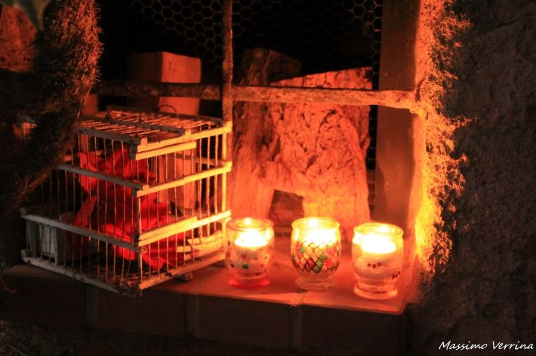 Poco più avanti su un piccolo davanzale c’erano 3 lumini accesi, l’atmosfera che si creava con quelle luci rossastre e il buio della sera attorno, mi fecero venir voglia di cogliere questo attimo attraverso uno scatto, che ora condivido con voi….