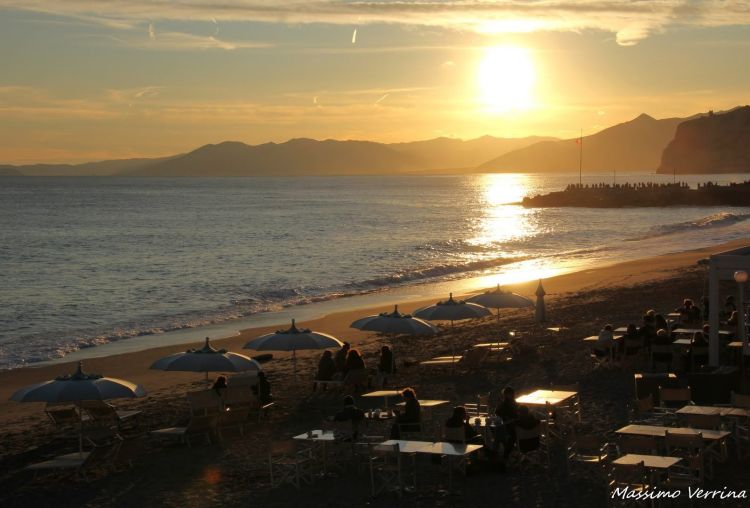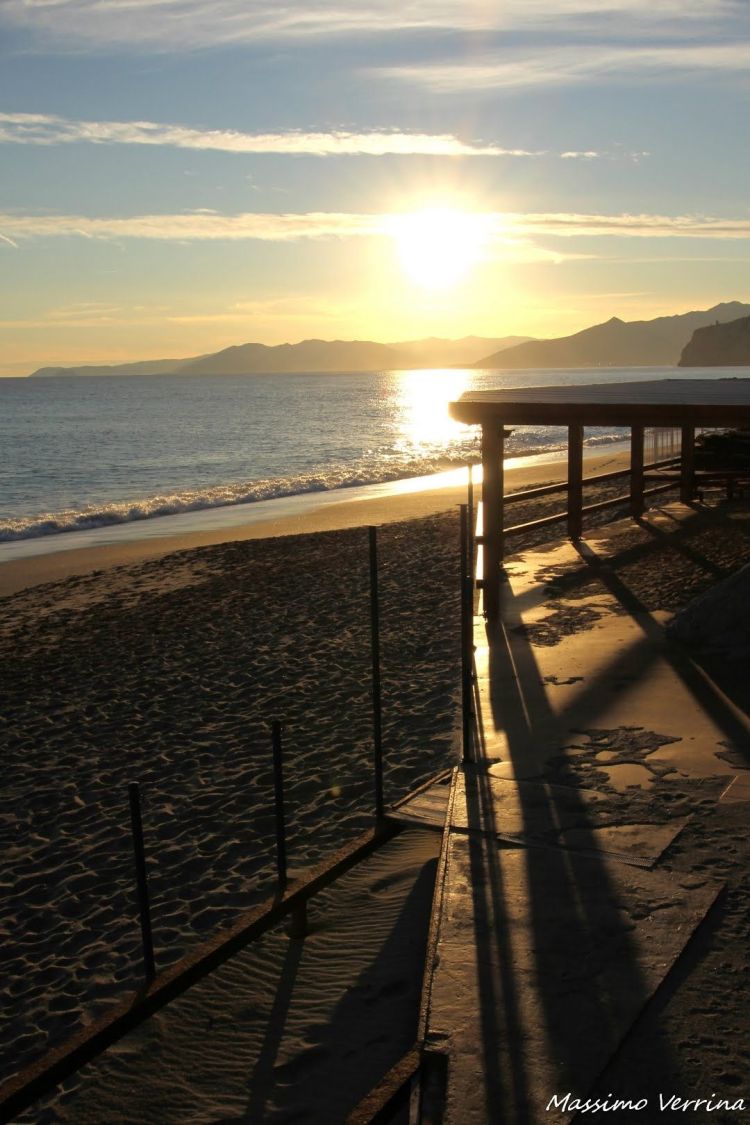Le prime ombre della sera cominciavano a coprire parti della spiaggia, mentre le luci caldissime del tramonto dipingevano emozioni sulle scogliere baciate dal mare..