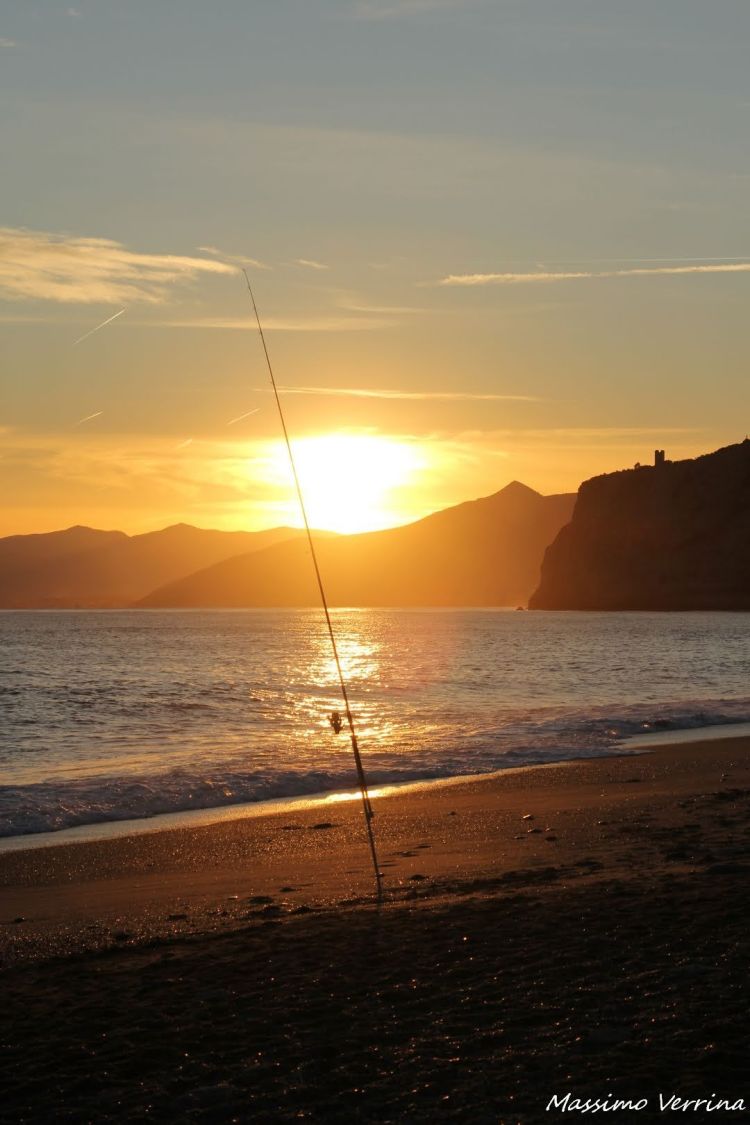Un pescatore, il mare, immagini che trasmettono tutto il relax che si può assaporare in Liguria durante la stagione invernale, con le spiagge prive degli stabilimenti balneari, e quegli angoli di solitudine che invitano a dimenticare i troppi problemi della vita….