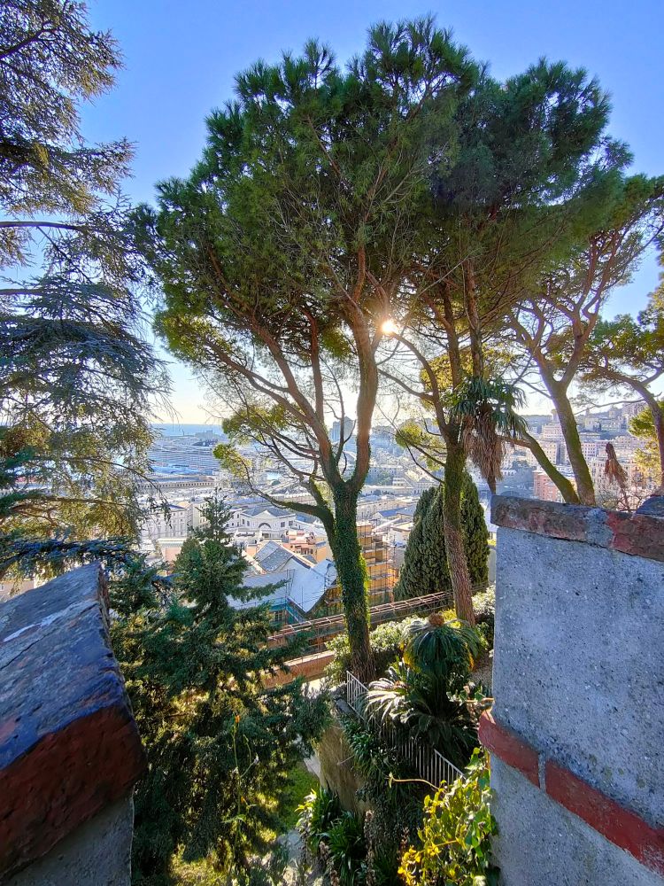 Il meraviglioso panorama della città di Genova contribuisce a rendere ancor più unico e interessante questo sito storico. Io per impreziosire lo scatto ho posizionato i raggi del sole fra gli alberi creando una visione suggestiva fatta di natura e paesaggio…
