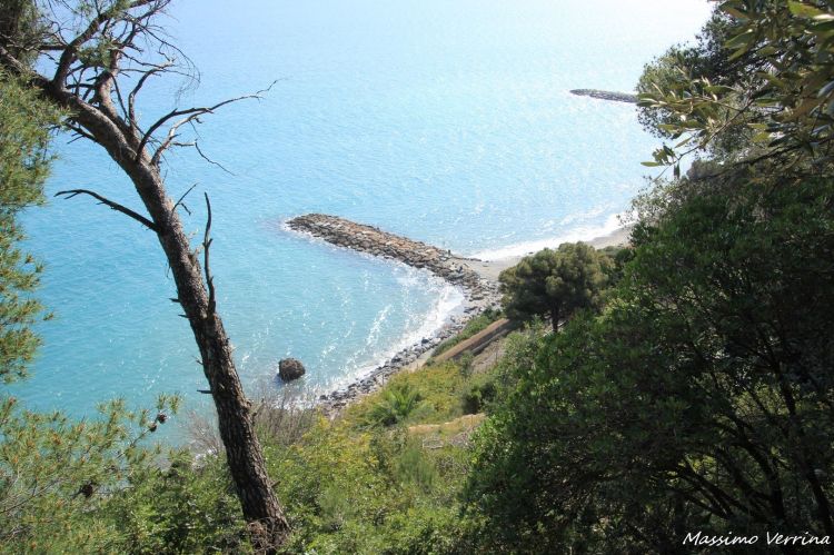 Da qui il panorama è davvero grandioso, e già vediamo la nostra prossima tappa, Ceriale, il borgo che vedete sullo sfondo con tanto di molo. Dal post di domani cominceremo a vederlo da vicino, ci saremo proprio dentro…