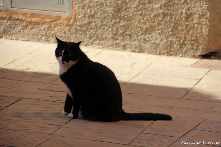 Ecco un bel gattino pronto ad accogliermi e mettersi in posa per me, non mancano mai nei vari borghi che vado ad esplorare….
