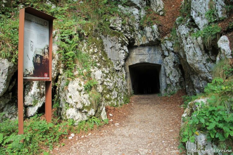 Ecco un cartello che racconta per sommi capi il sentiero che andremo a percorrere, ma non solo, anche un po’ la genesi di questo avamposto difensivo, dopo averlo letto si comincia a raggiungere le prime gallerie…