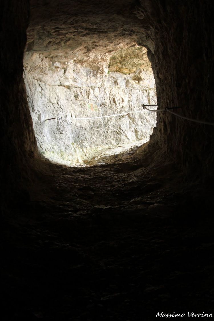 Salendo la ripida salita all’interne delle successive gallerie, la percezione della fatica sembra aumentare, un po’ per il cammino appena percorso, un po’ per il terreno impervio che non permette di fare passi semplici. Per le giornate in cui il fondo è bagnato sono state messe delle corde alle pareti, in quanto questo tratto per via della pendenza diventa molto scivoloso….