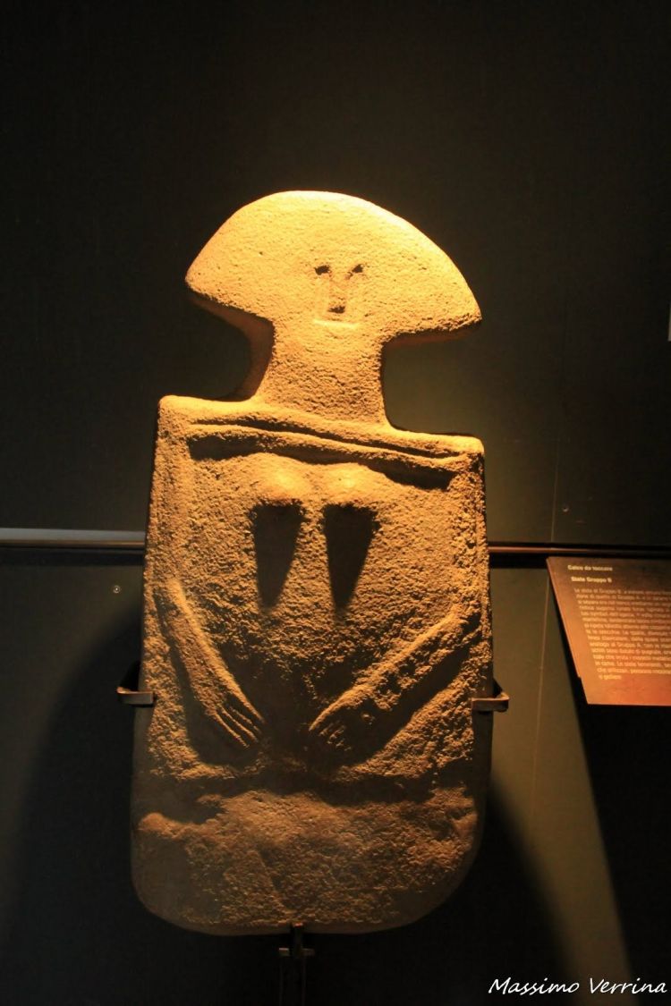 La puntata di oggi è interamente dedicata al Museo delle Statue Stele, che ho cominciato a raccontarvi nel post di ieri. Nelle Statue che vedete oggi potrete notare delle particolarità molto interessanti, che una vista frettolosa potrebbe non farvi scorgere, come quelle raffigurazioni sotto le mani della prossima statua che vi faccio ammirare. Qui sembra riprodotto un animale….
