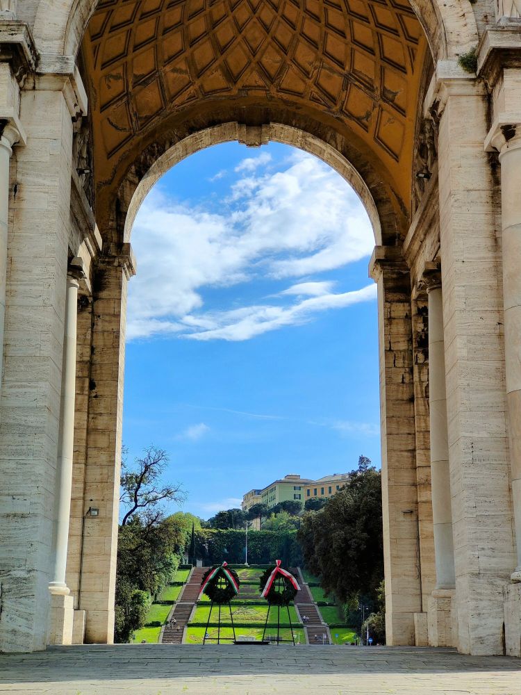 E questa bella prospettiva di una scultura che vista attraverso quest’ottica da questo punto si sovrappone alla cupola centrale, slanciando la prospettiva scenografica del tutto…