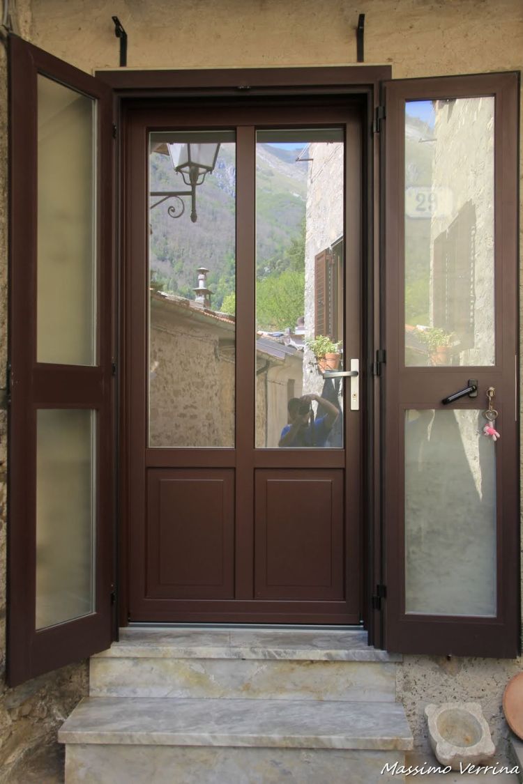 Risalendo una via che ancora non avevo percorso noto questa spettacolare porta a specchio. Oltre a celare perfettamente il suo interno riflette tutta la bellezza del borgo, tanto da diventare essa stessa parte di quella bellezza…