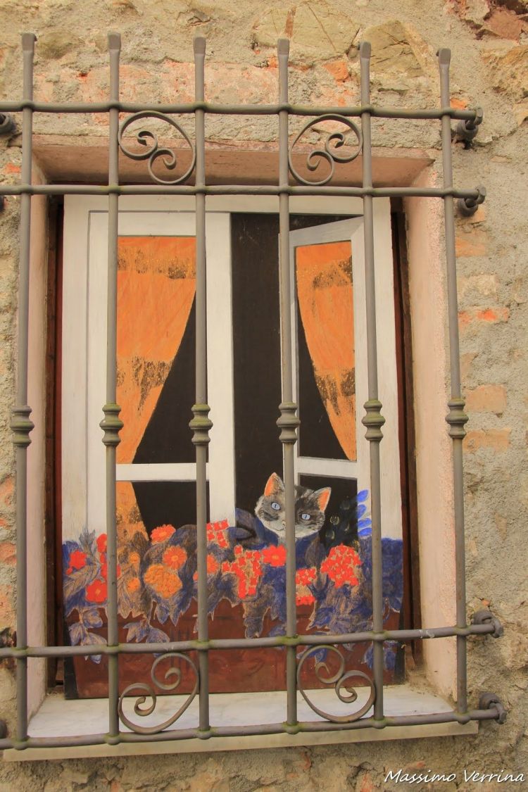 Guardate un po’ la creatività degli abitanti cosa ha generato! Hanno trasformato una finestra in un dipinto, con tanto di simpatico gattino che spunta, un’idea davvero bella, in grado di stupire i turisti che passano di qua…