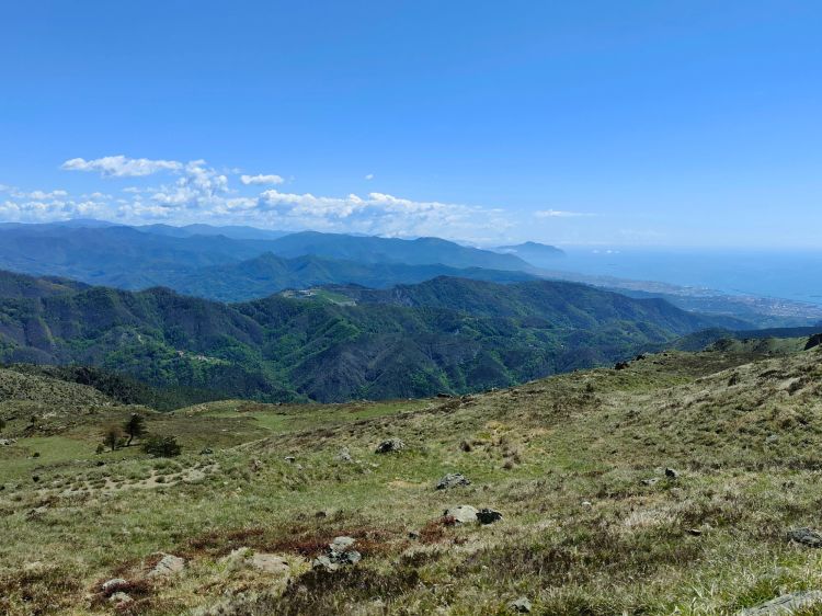 Questa sotto invece è tutta la Riviera di Levante vista dai monti, si nota in lontananza l’inconfondibile sagoma del Promontorio di Portofino, vero punto di riferimento della Riviera ligure di Levante….