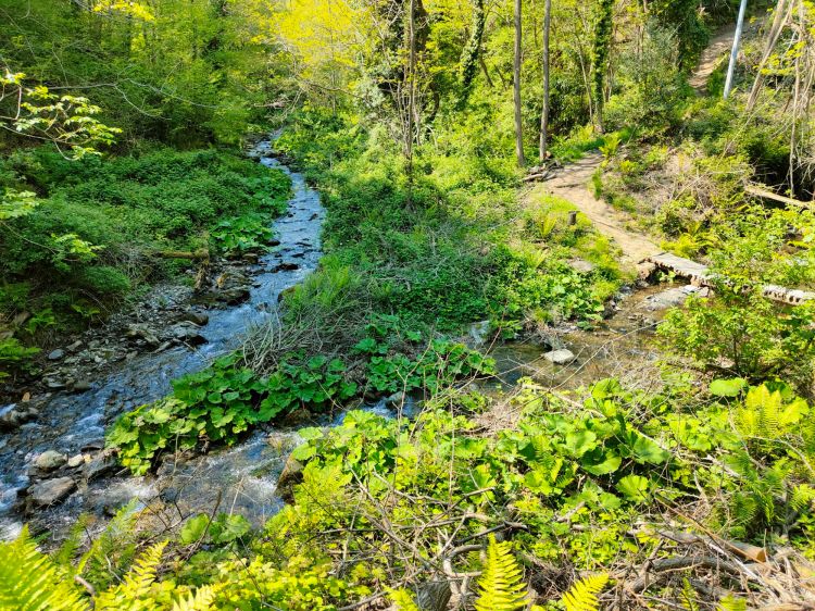 Alla fine del bosco s’incontrano anche diversi corsi d’acqua, si tratta di piccoli ruscelli che alimentano il torrente principale più a valle, qui ne vediamo due che s’incontrano proprio in questo punto….
