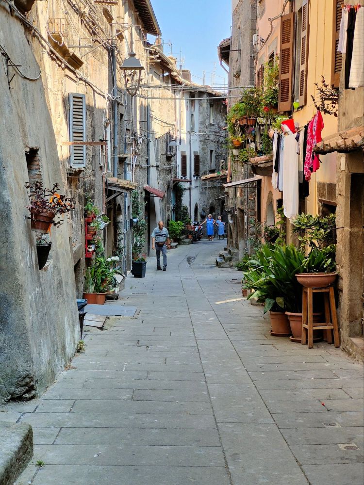 1. spettacolari davvero queste strade interne: mi colpiscono le facciate ricche di portavasi tettoie le persiane i panni stesi..ricche di ogni cosa e poi certi colori davvero messi con arte e bellissima la foto con la torre sullo sfondo. Grazie Max questo borgo ricco di tante cose e molto vissuto..buona serata